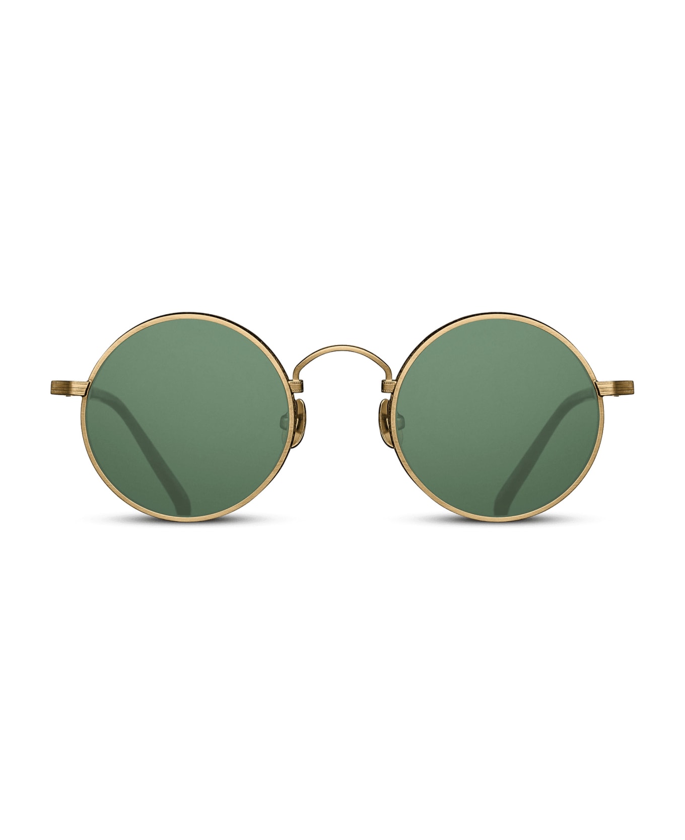 Matsuda's M3100 - ANTIQUE GOLD / DARK BROWN sunglasses pay homage to Matsuda's history: pressed titanium rims incorporating our signature M+N motif. The intricate engraving is highlighted by hand applied lacquer that beautifully contrasts the precious metal plating. They feature lightweight construction, wide rim with signature M+N motif, hand-applied lacquer.  Made in Japan