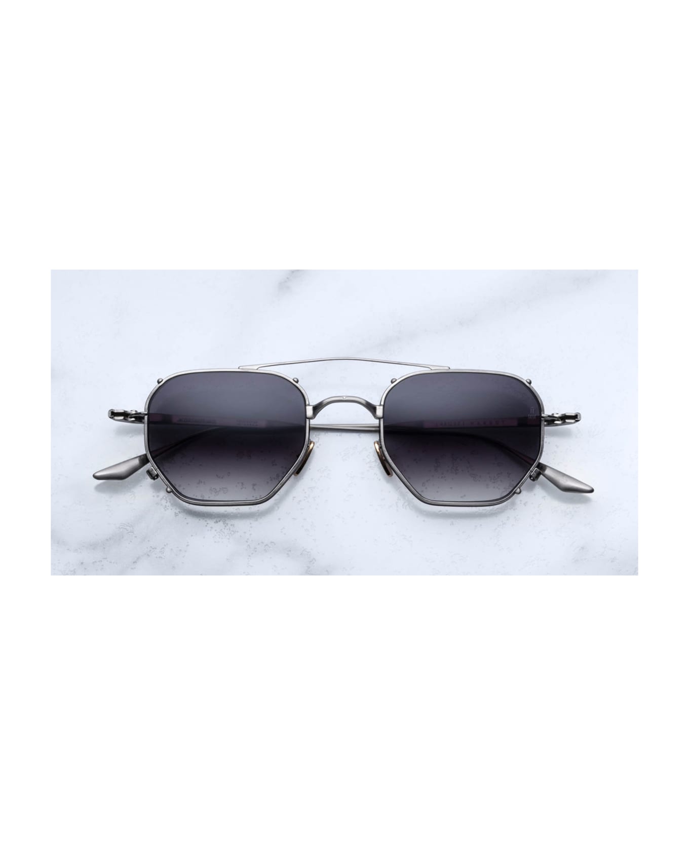 Jacques Marie Mage's MARBOT CHROME - JMMMA-10D - sunglasses are the latest addition to the Titanium series; a well-balanced, unisex octagonal lens shape and double-wire rim. They feature a 100% beta titanium frame with a bold architectural double-hinge, steel and beta titanium temples with custom detail temple tip, monoblock beta titanium hinge, custom 4mm rim wire with hairline detail, custom nose pads with logo and hairline engraving, 4 base CR39 lens with backside anti-reflective treatment and 100% UV protection.