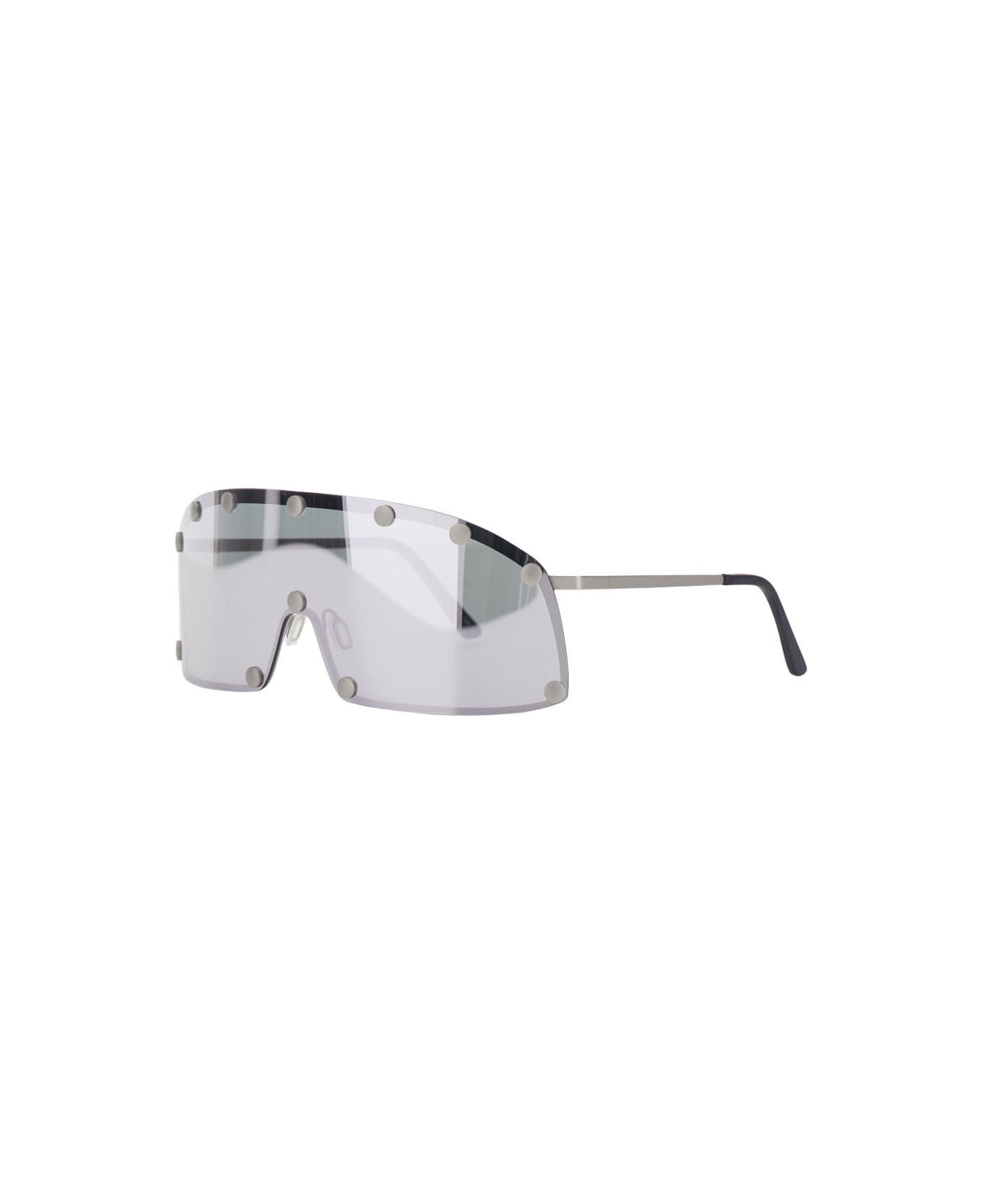 Gray oversized sunglasses. Stud details on the front and thin two-tone temples. Made of stainless steel.
