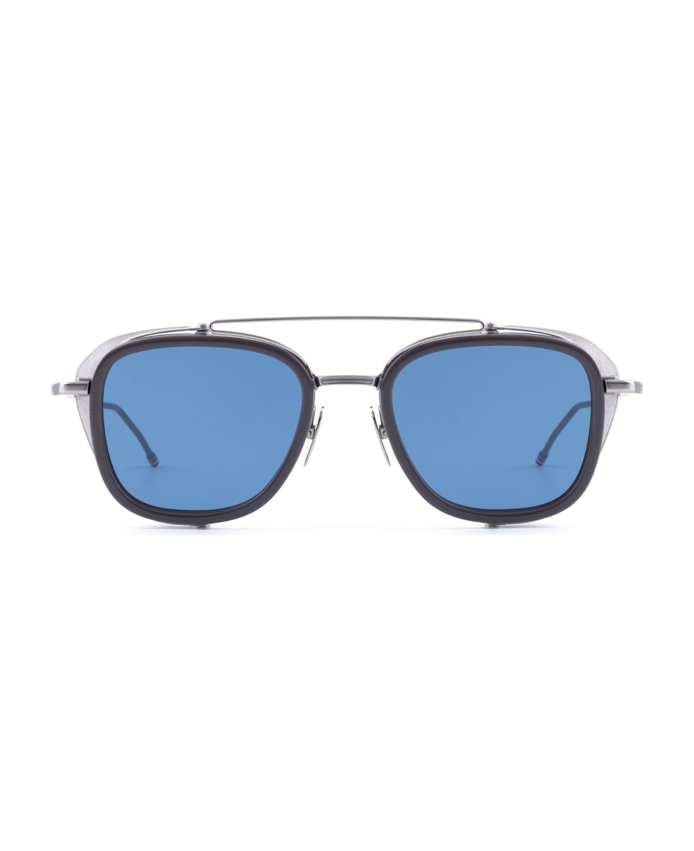 Brand: Thom Browne Model: Rectangular - Grey SKU: Ues808A-G0003-020-51 Type: Sunglasses Color: Grey Material: Acetate Lens color: Blue Size: 51mm-21mm-150mm Made in Japan