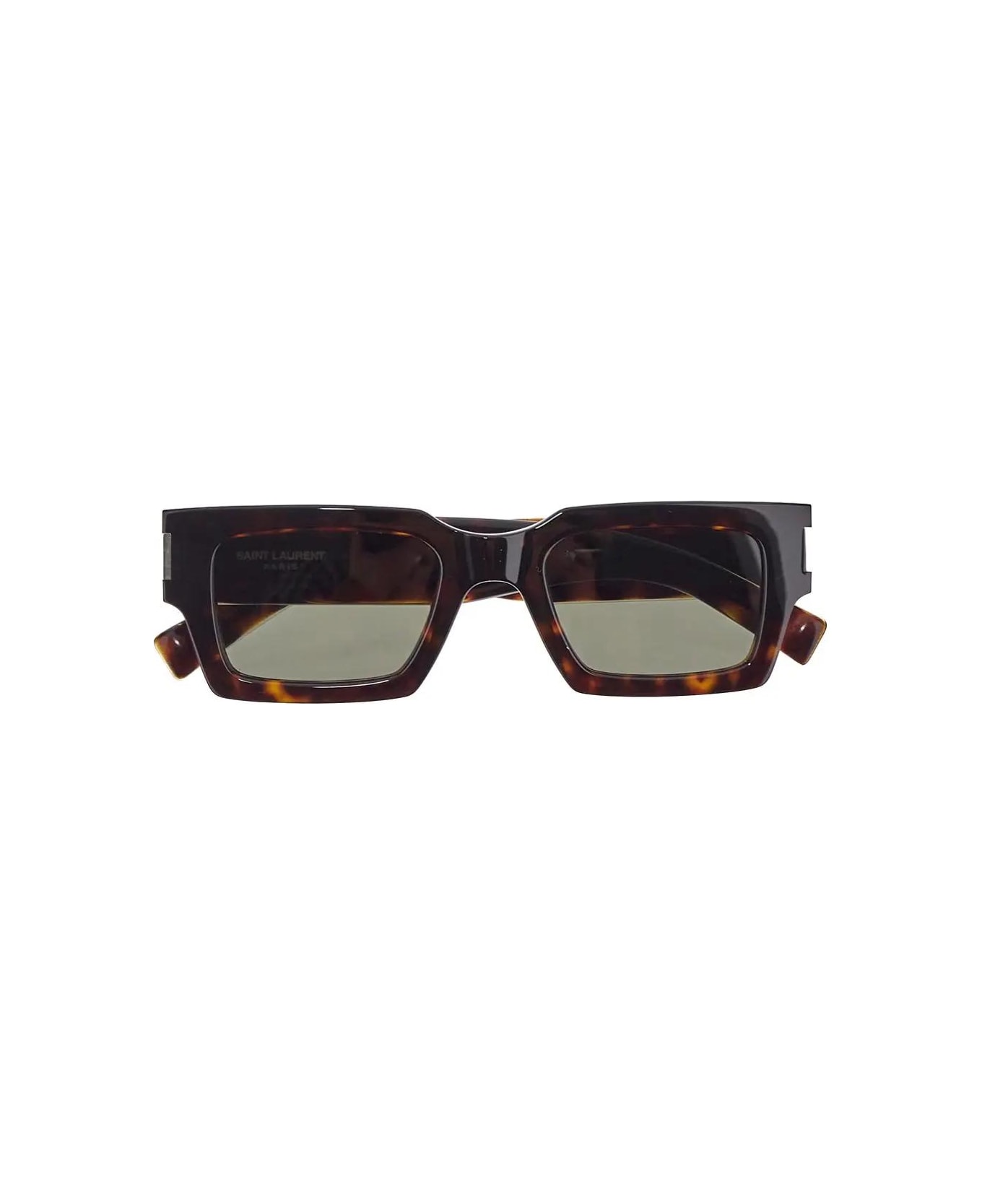 Saint Laurent sunglasses in havana acetate with smoke nylon lenses, geometric square frames and logo engraving on the temple. Composition: 80% Recycled Acetate 20% Bio Nylon