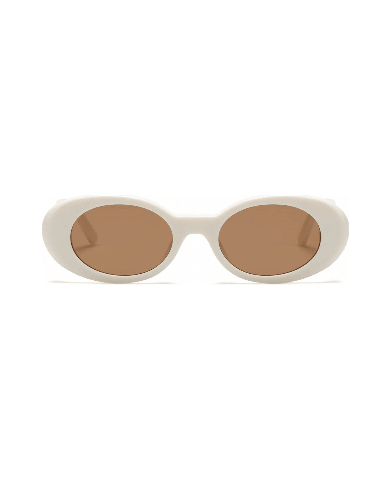 Palm Angels Spirit sunglasses These sunglasses are from Palm Angels new collection recall the 90s style with a rock attitude. The Spirit sunglasses, here in white, are made of acetate and feature Palm Angels logo at sides and round caramel lenses. - S/S 2022- Acetate frame with round lenses - Material: 100% Acetate - Dimensions: height 4,00cm - length 14,5cm - depth 14,6cm- Made in Italy- Code: PERI004S22PLA0010160