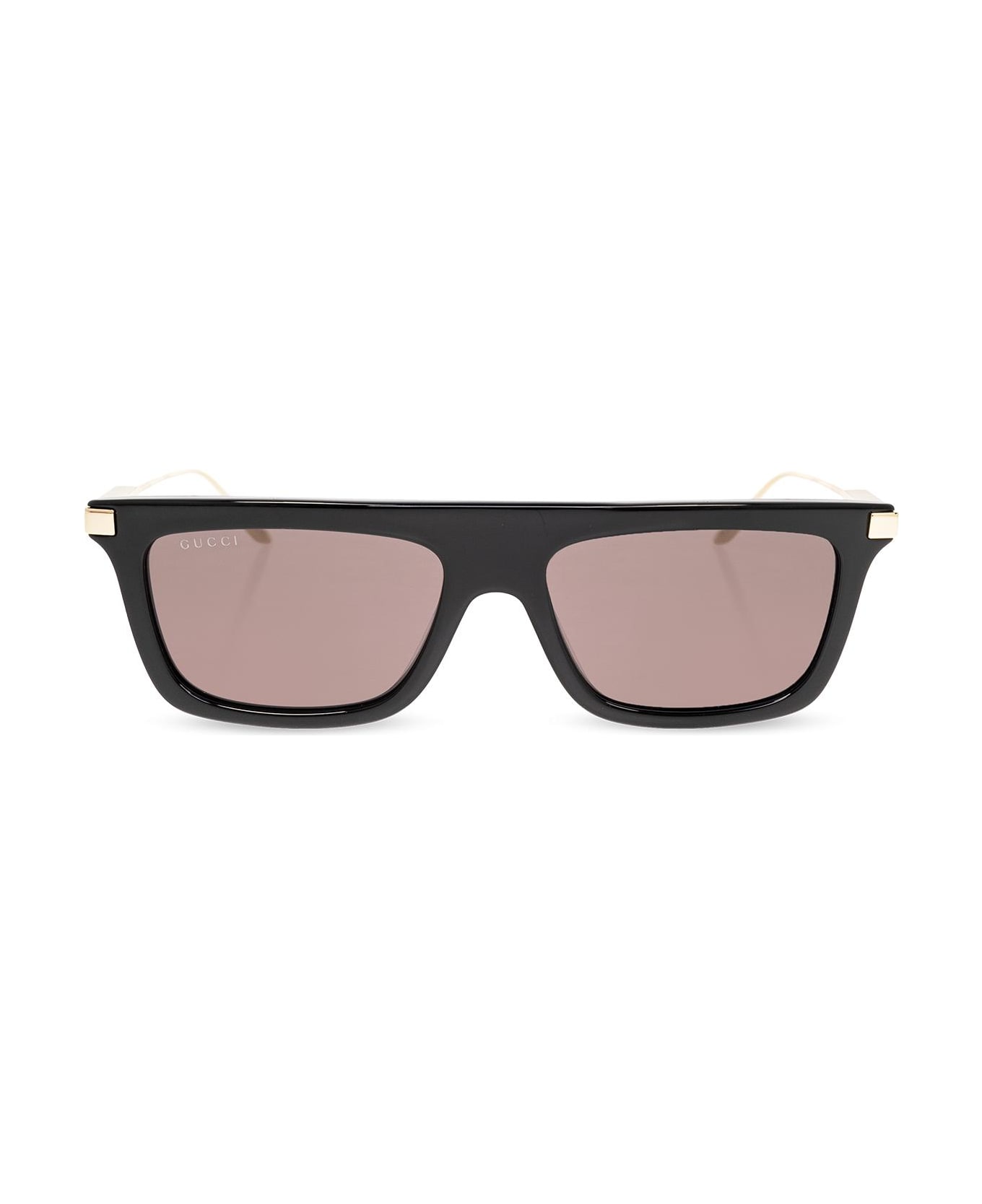 Black and gold-tone sunglasses from Gucci. This pair features a rectangular frame, temples with a logo and grey lenses with 100% UV protection. Case included the color will be individually selected for each pair of glasses.