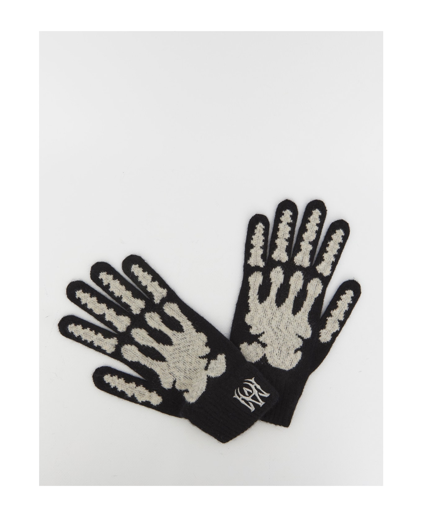Black cashmere gloves with contrast Skeleton embroidery. Ribbed finishes.