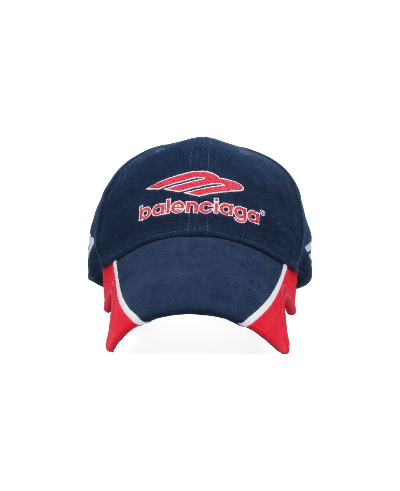 Balenciaga '3B Football Cap' baseball cap in blue cotton denim with curved visor on the front, contrasting logo on the front, logo detail embroidered at the back, adjustable strap at the back. Composition: 100% Cotton