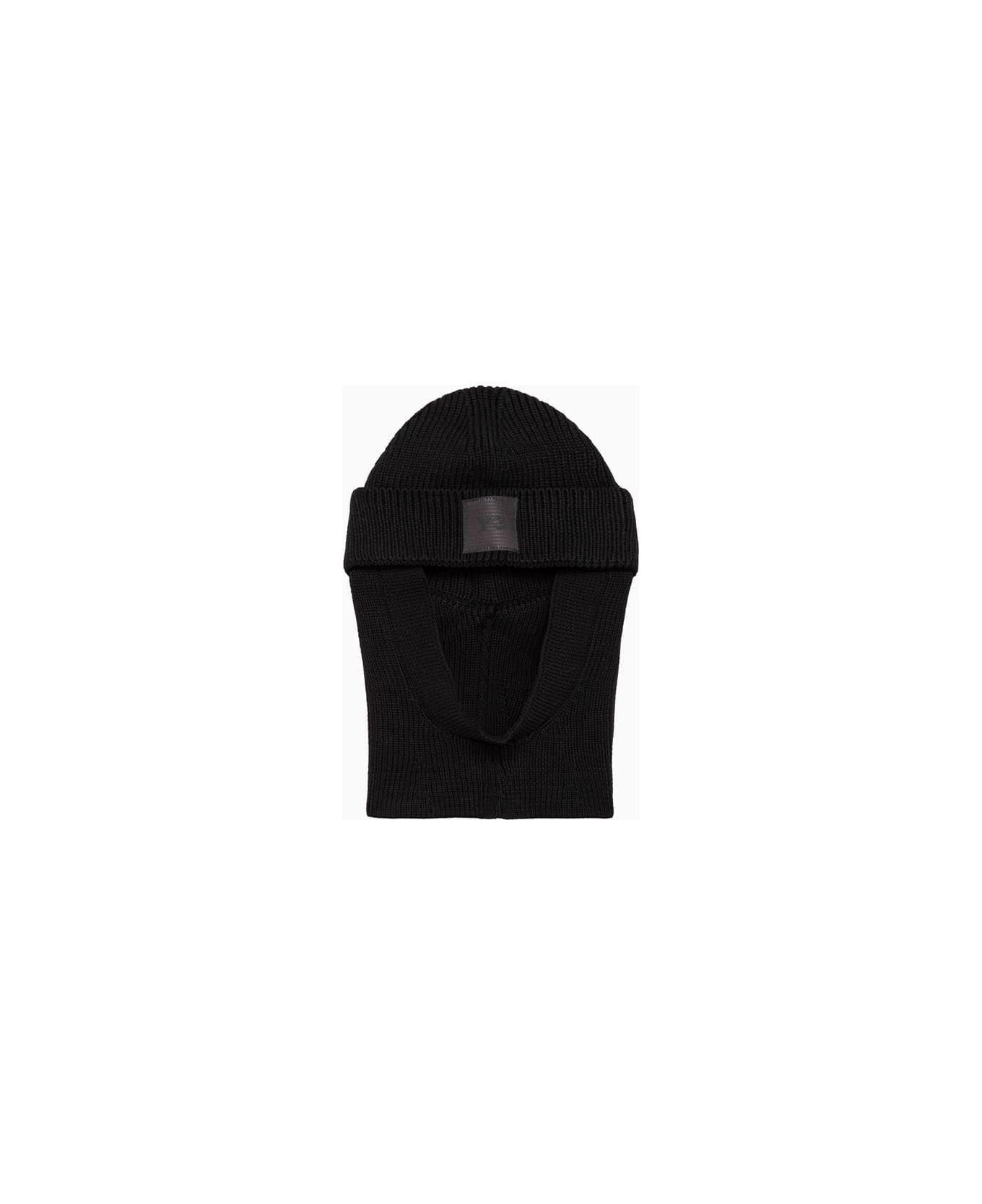 solid color balaclava in soft merino wool. ribbed texture. tonal reverse detailing at hem. tonal y-3 tpu logo patch on front. color matched protective ear flaps and collar. composition: 100% merino wool.