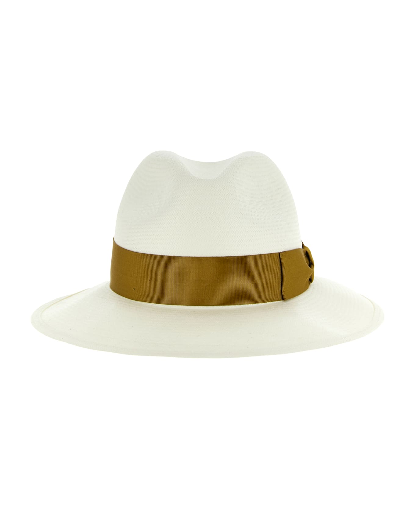 'Amedeo' hat in fine Panama, a precious material obtained from the hand weaving of the most suble fibers of the Carludovica Palmata palm, belted detail in contrasting canneté, medium brim. Each piece is unique. Handcrafted product, any imperfections are to be considered characteristics of uniqueness.