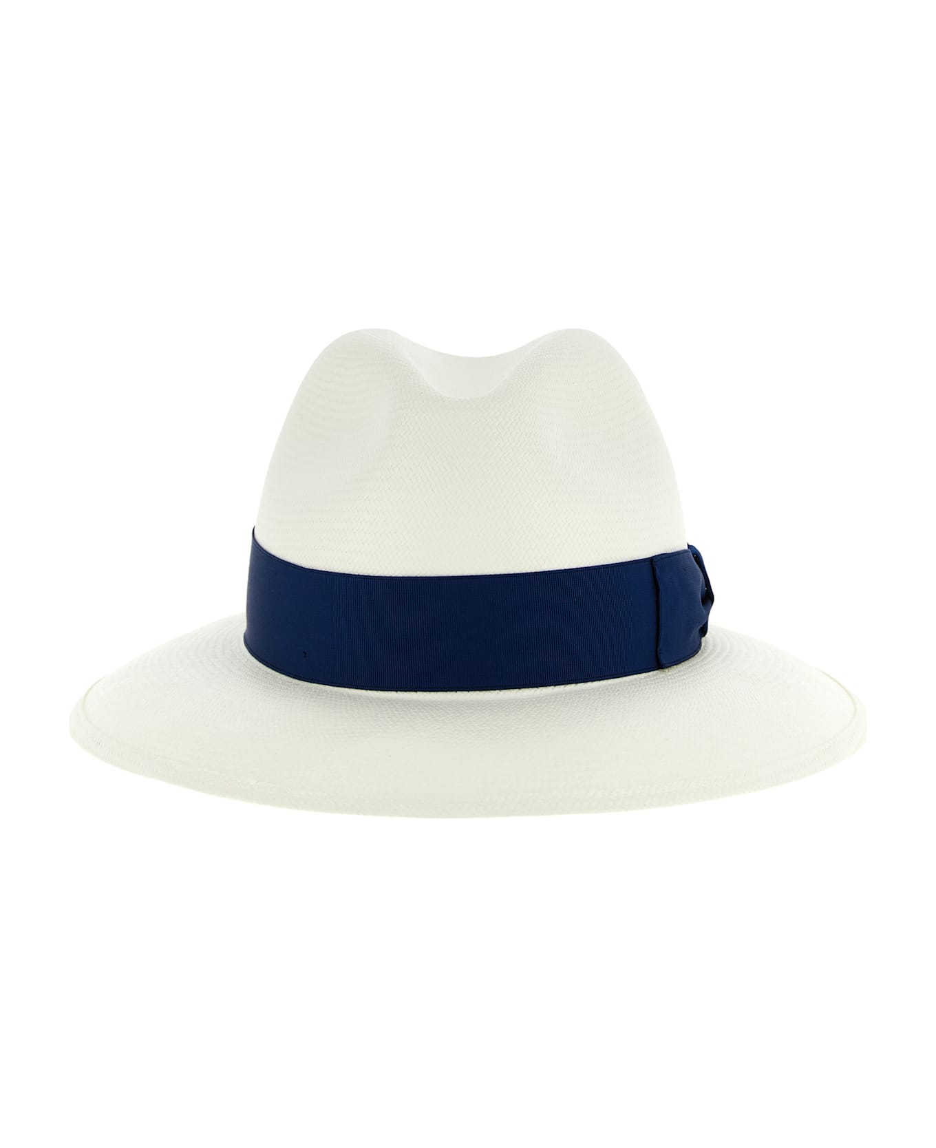 'Amedeo' hat in fine Panama, a precious material obtained from the hand weaving of the most suble fibers of the Carludovica Palmata palm, belted detail in contrasting canneté, medium brim. Each piece is unique. Handcrafted product, any imperfections are to be considered characteristics of uniqueness. Composition: 100% hay