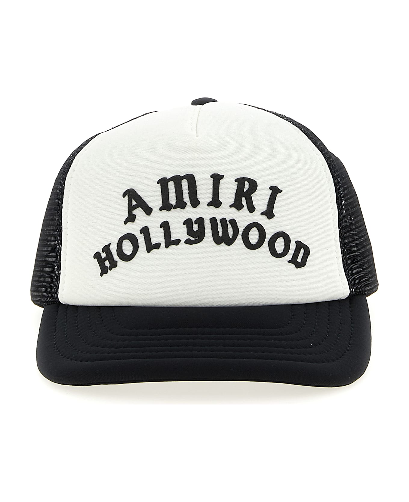 Amiri Hollywood Trucker' openwork fabric cap, contrasting front with 3D embroidery, adjustable back strap.