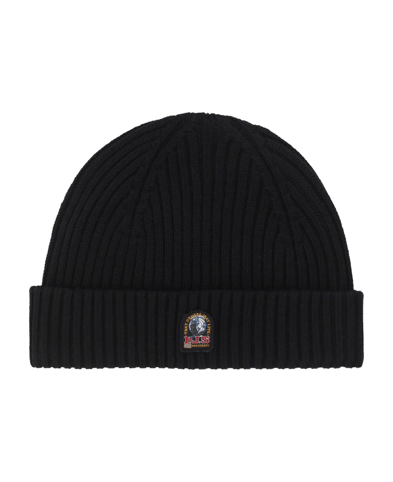 Merino wool beanie hat by parajumpers, all-over ribbed pattern, iconic brand logo patch embroidered in contrasting colour on the front.