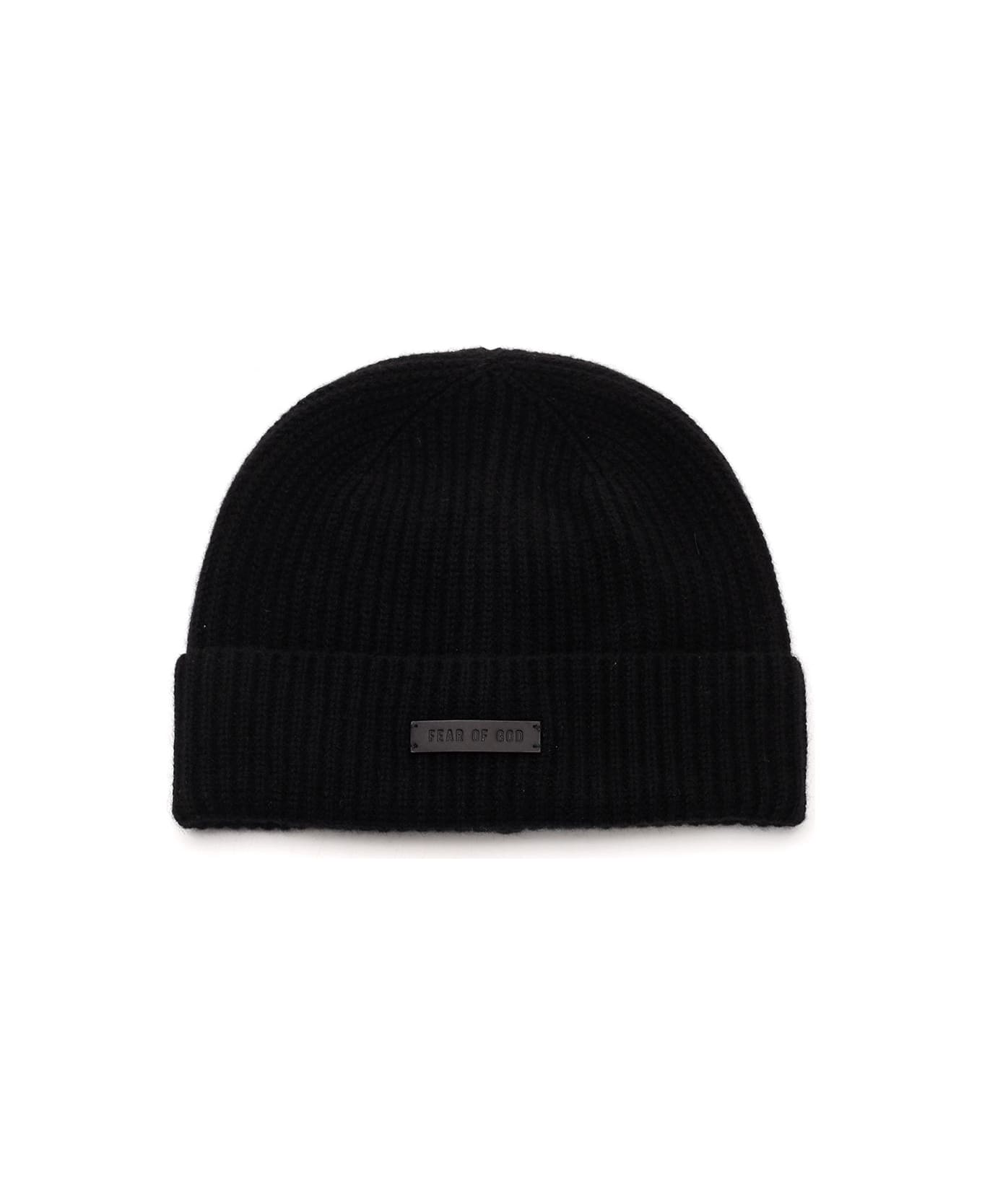 Fear of God beanie in cashmere featuring ribbed detailing and iconic leather patch logo on the fold