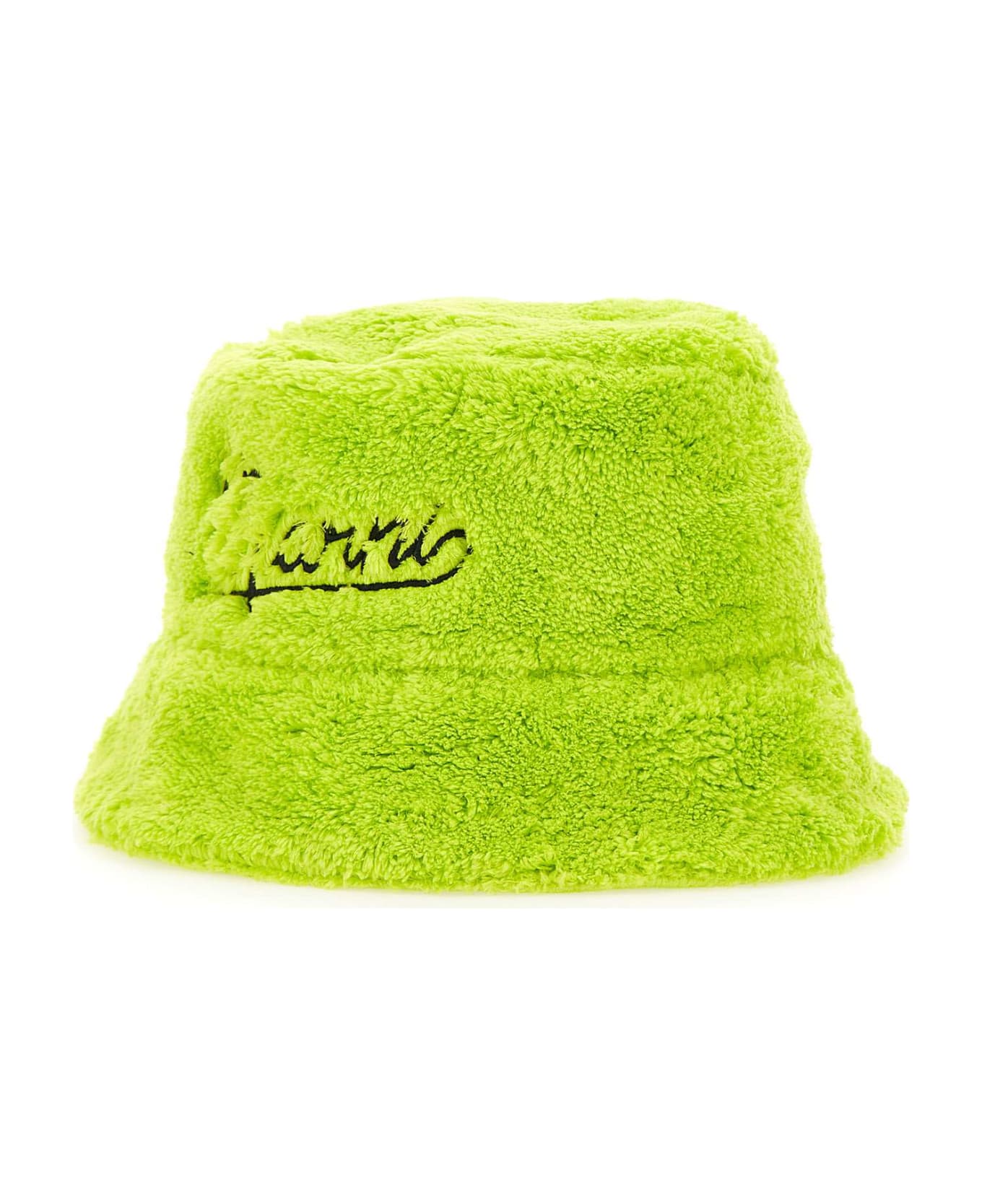 Marni men's fisherman plush-effect cotton terry hat, very soft, lime green, contrasting black italics logo on front. Available sizes M and L. Composition: 100% Cotone;