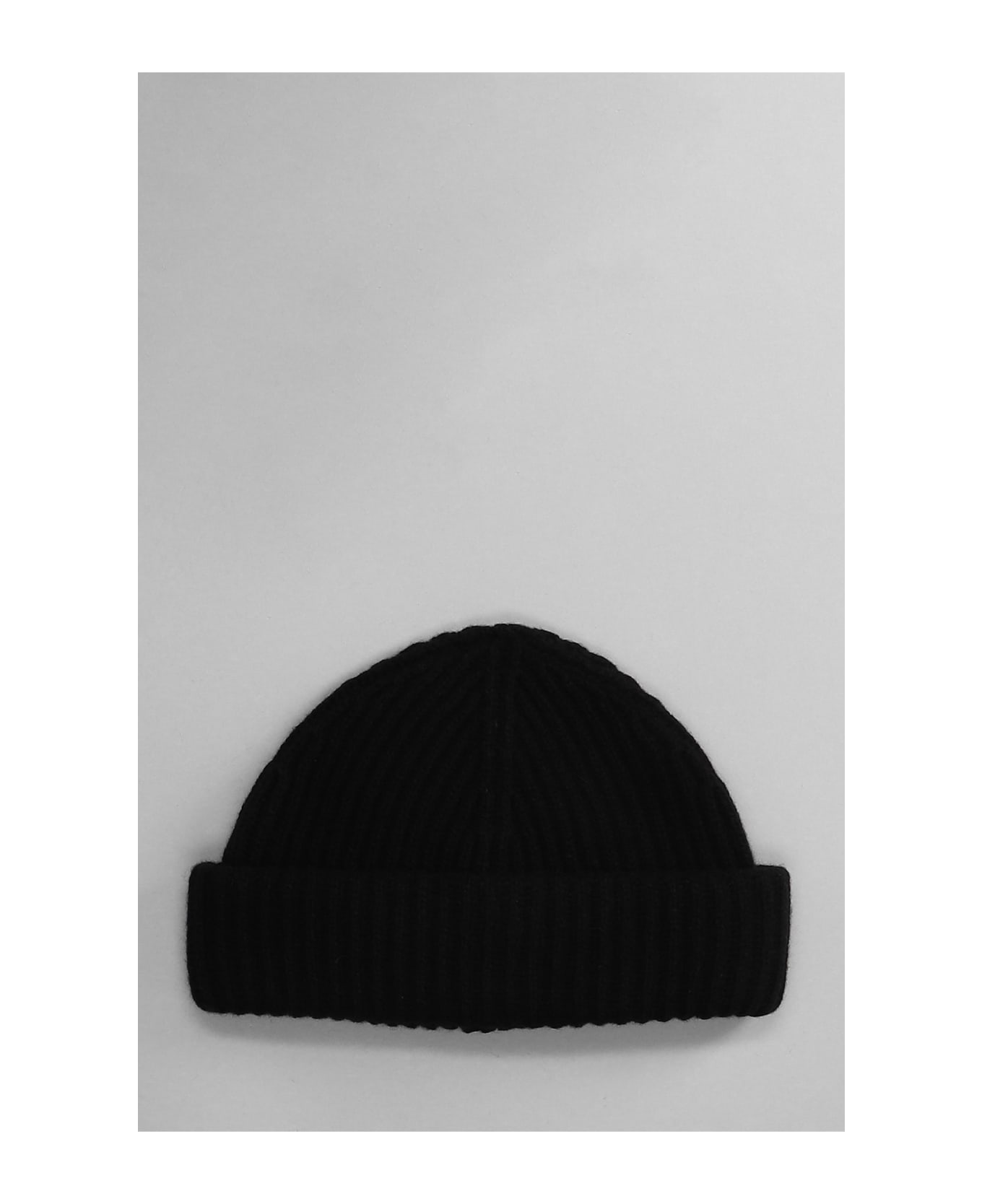 Hats in black wool, cuffed hem, ribbed knit, 100% cashmere