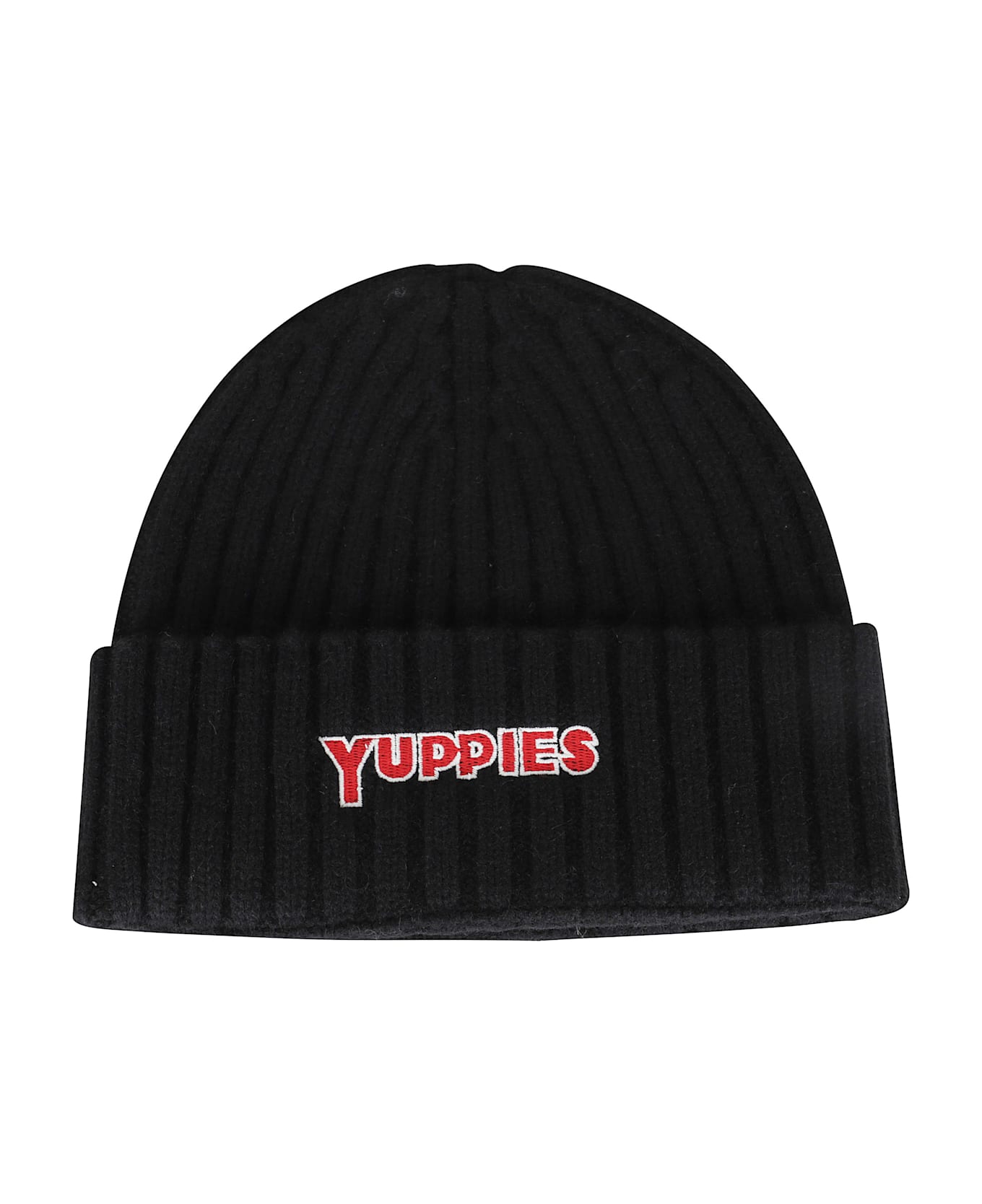 Wengen hat - MC2 Saint Barth - Black color - Ribbed wool blend fabric - Contrasting embroidered lapel lettering