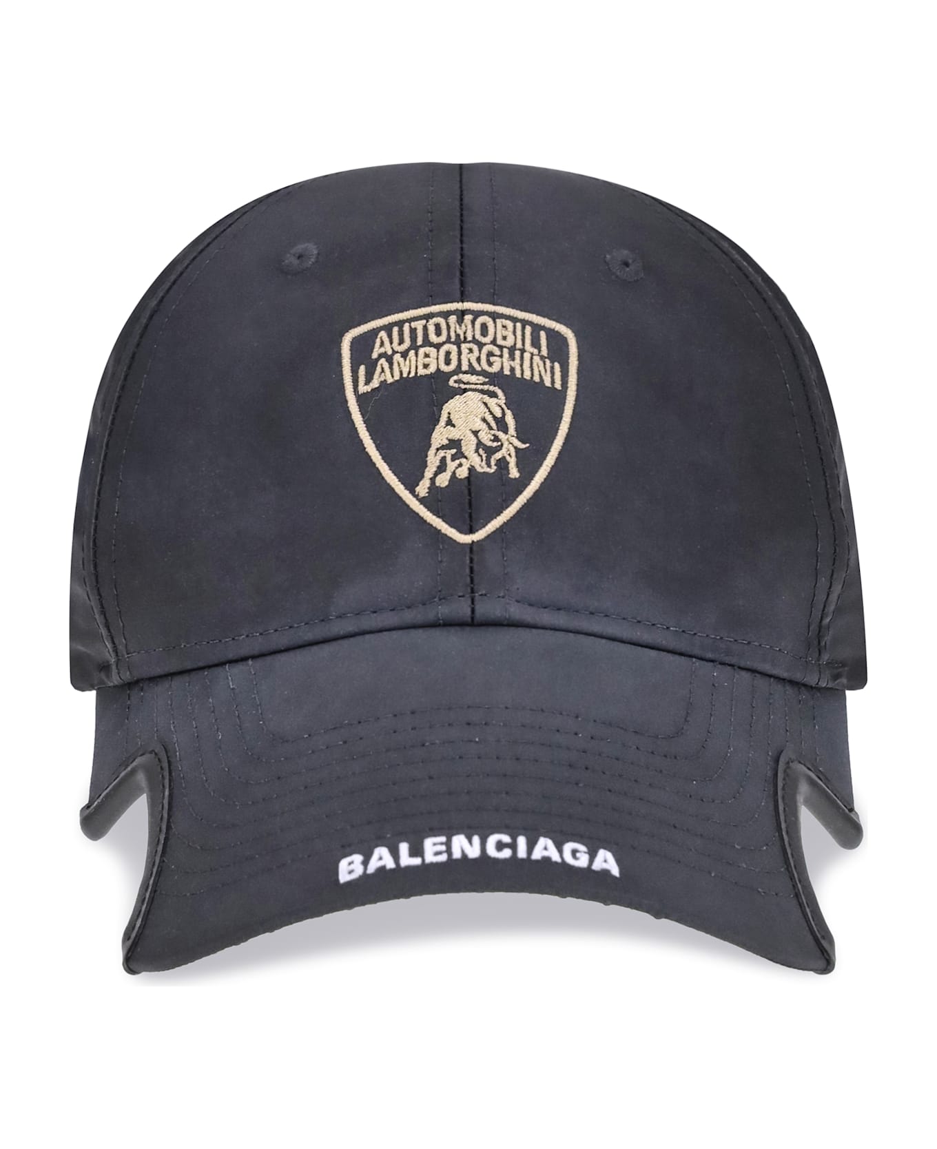 The lamborghini x balenciaga baseball cap is a bold accessory born from the collaboration between two icons of luxury and design. featuring embroidered ventilation eyelets on the top, it has a distinctive cut-out visor on both sides and an adjustable tongue with hook-and-loop closure on the back. the lamborghini shield motif embroidered on the front completes the look, designed by balenciaga for automobili lamborghini, a symbol of a sporty and exclusive style.