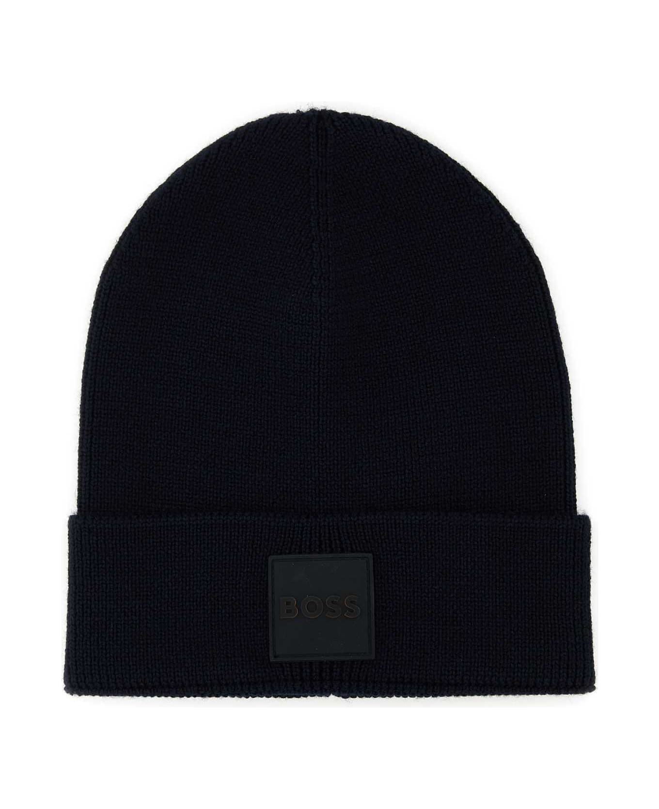 Midnight Blue Wool Blend Beanie from Hugo Boss