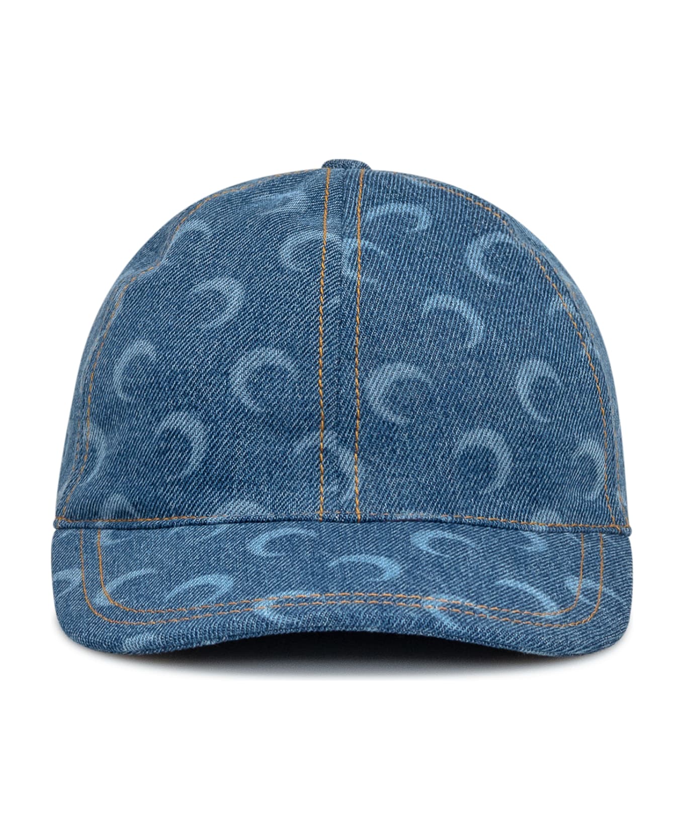 Blue denim hat. Moon logo all over.
