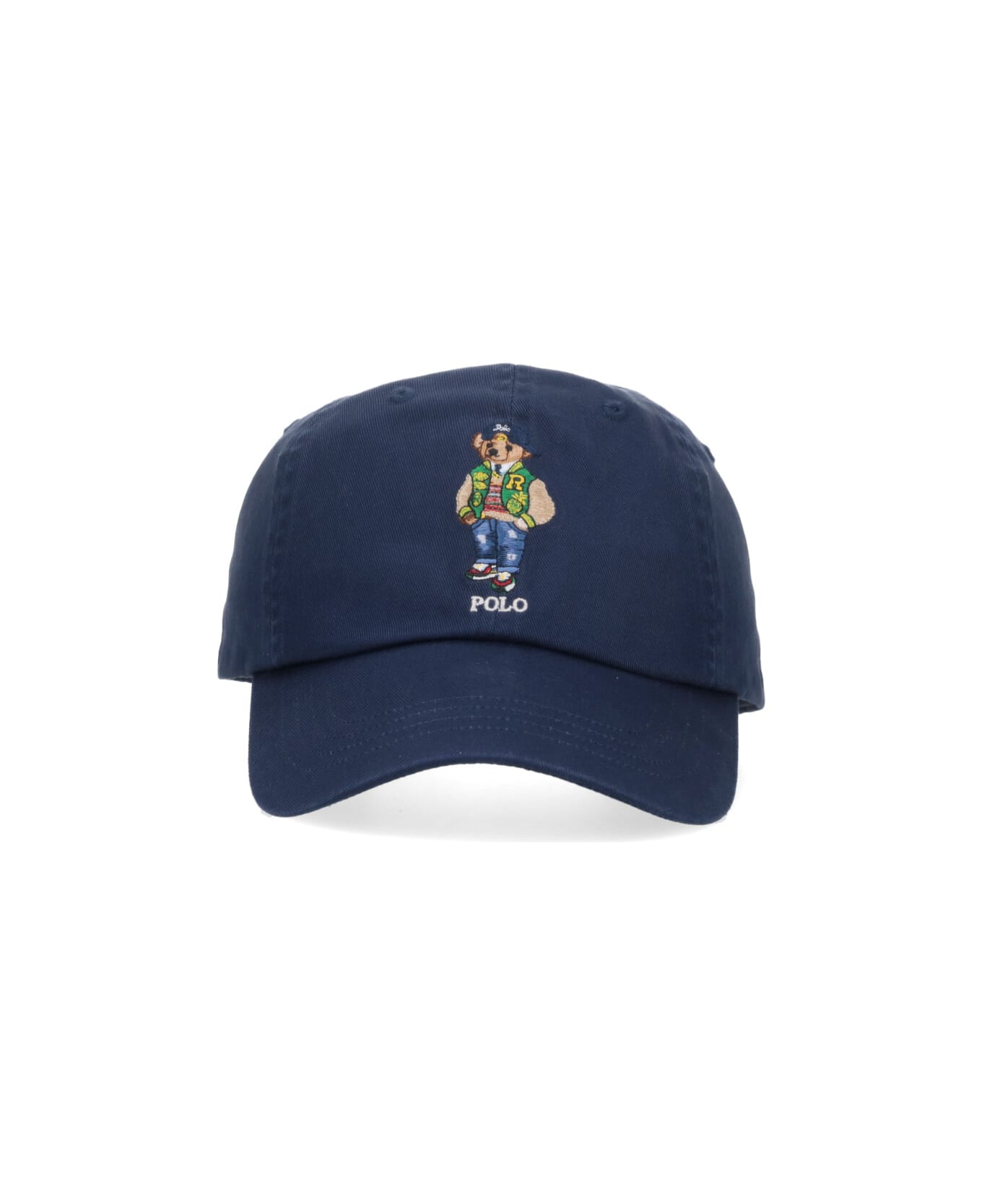 Polo Ralph Lauren polo Polo Bear baseball cap in navy blue cotton twill with curved visor, multicolor 'Polo Bear' embroidered logo on the front, white embroidered logo on the back, brown leather adjustable strap on the back, silver metal buckle detail.