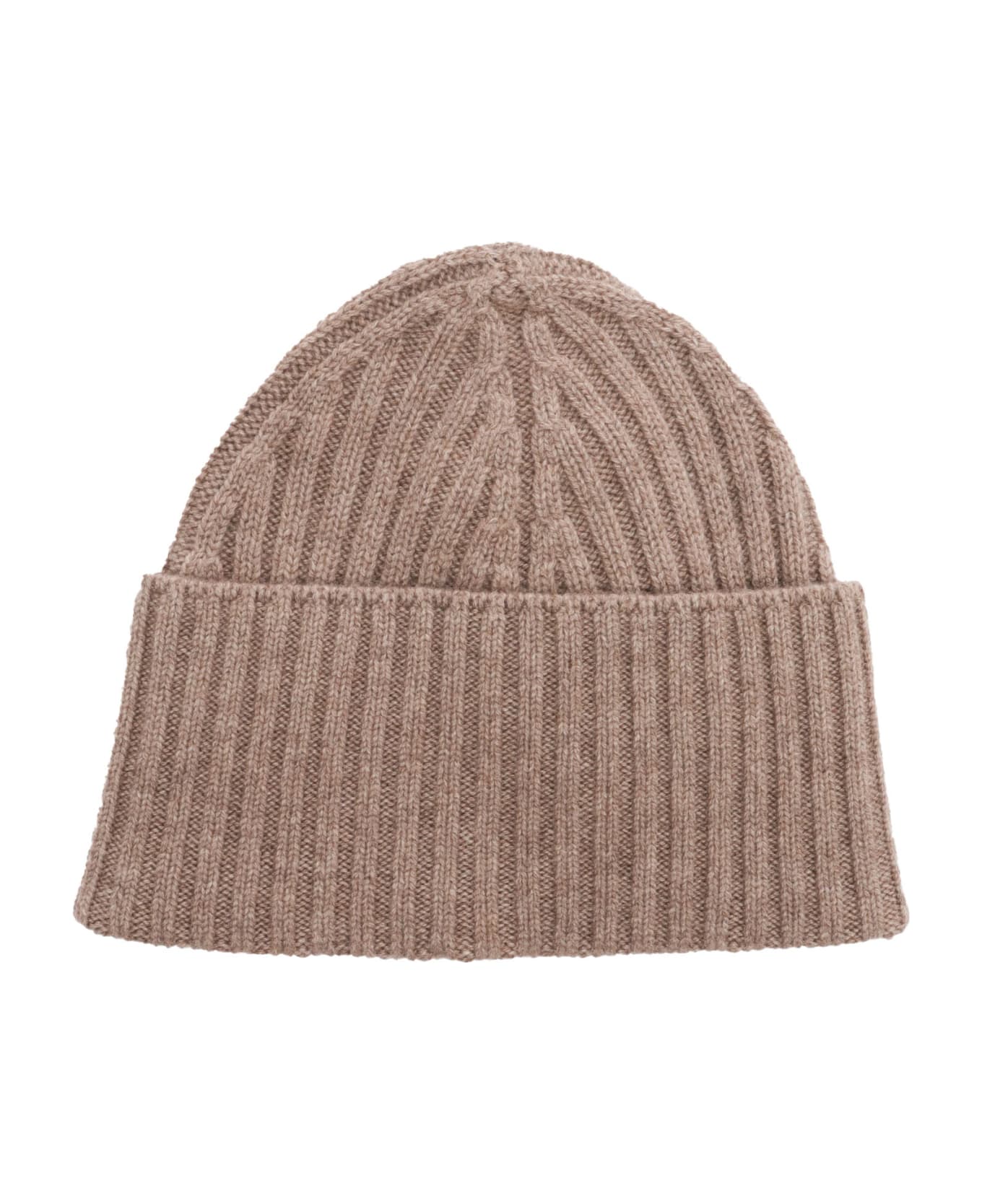 Light brown cashmere beanie, maxi turn-up