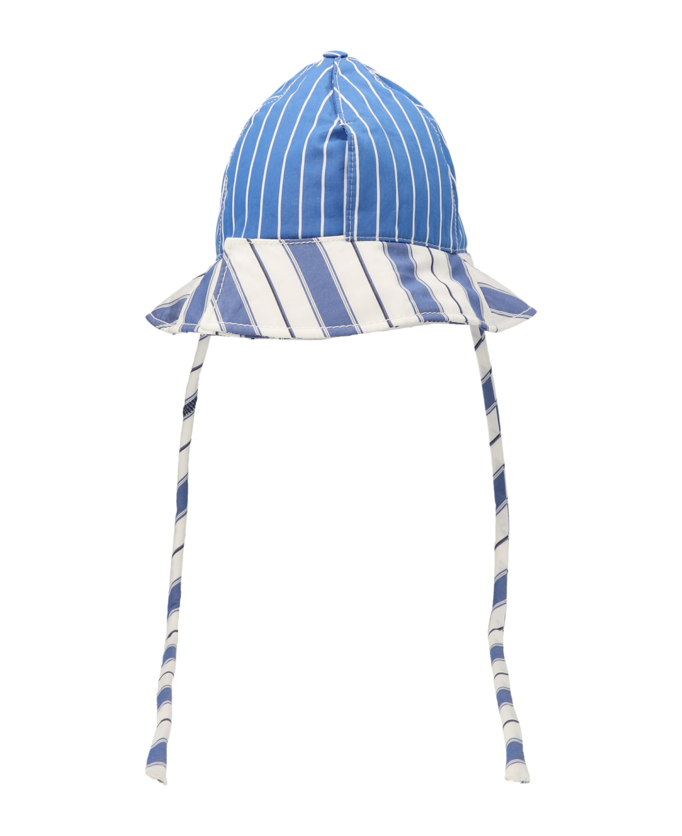 Striped cotton bucket hat with nylon cordie detail, velcro adjustable.