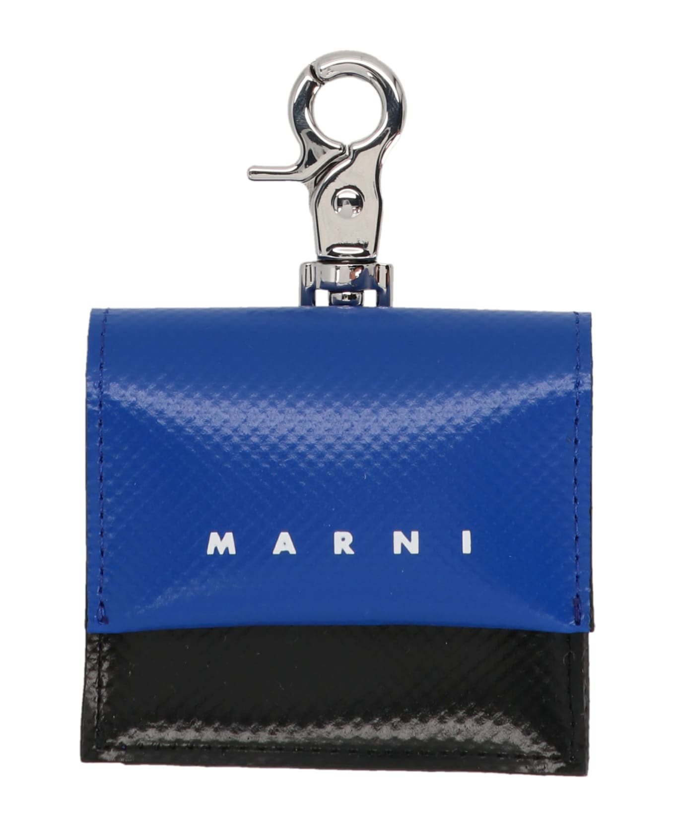 AirPods with snap hook, a flap compartment, snap button closure, palladium metal elements and a front logo print. Composition: 100% polyester