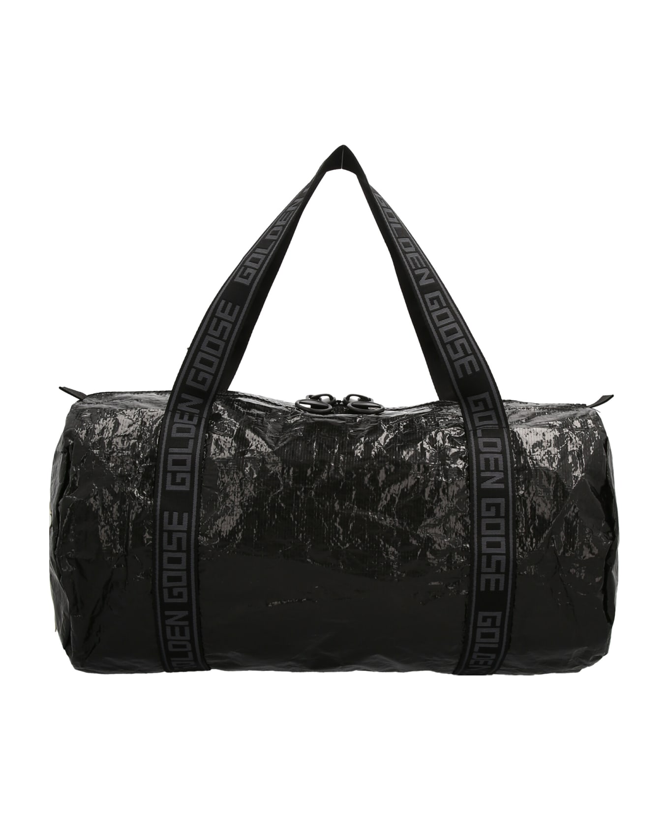 Plastic duffel bag with leather logo applications on the sides, a zip closure and logo canvas handles.