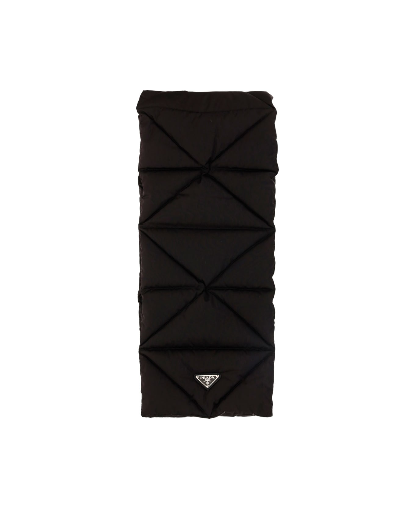 Hooded scarf by prada, quilted and padded design, hidden hood inside a zippered closable pocket, iconic triangular brand signature plaque embossed on the front. Composition: 100% % Polyamide