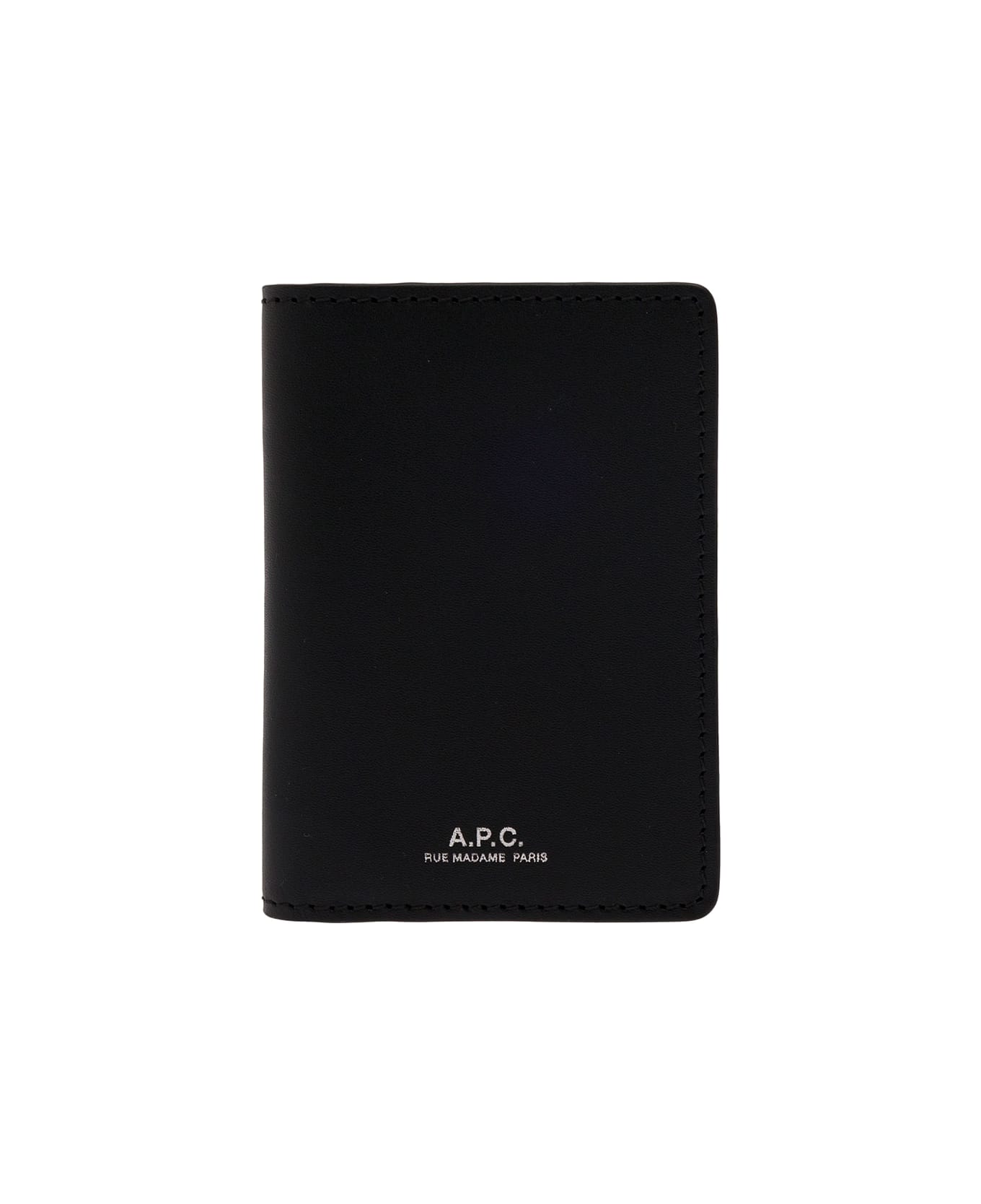 'stefan' Black Card-holder With Embossed Logo In Leather Man