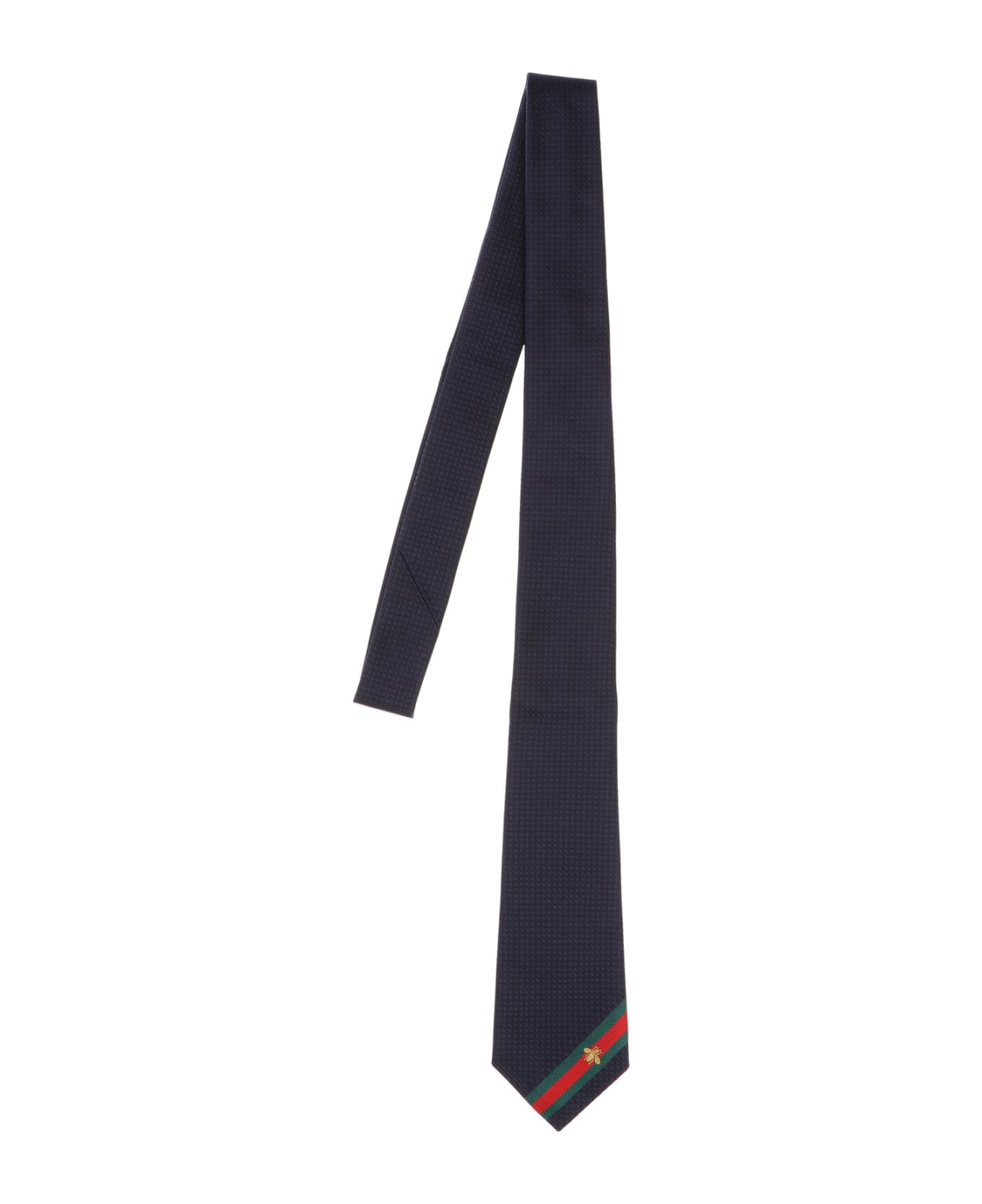 Gucci blue silk tie with gold bee embroidery and web detail. Composition: 100% silk