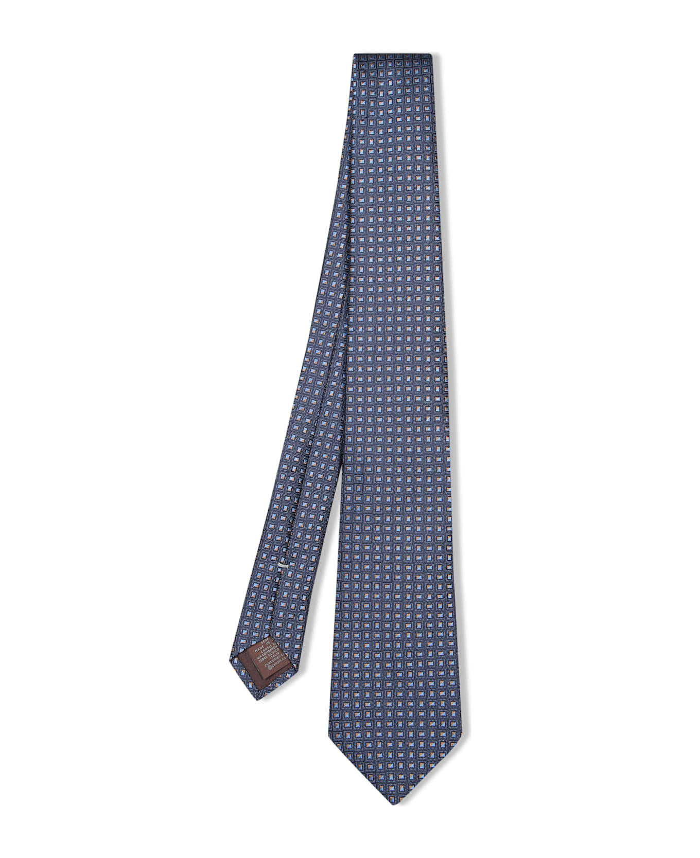This elegant Canali tie stands out with its micro geometric pattern in shades of brown and blue on a silky base, perfect for stylishly completing any formal outfit. Composition: 100% Silk