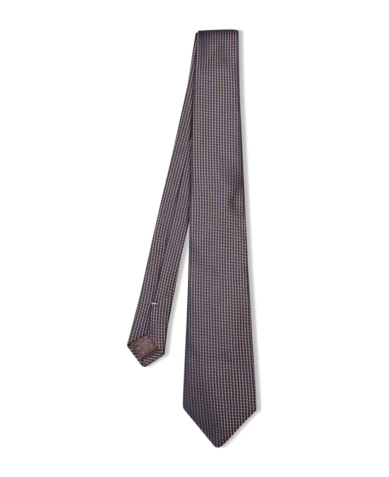 This elegant Canali tie exudes sophistication with a refined geometric pattern in shades of brown and blue. Crafted in pure silk, it is the perfect accessory to add a touch of class to any formal attire.