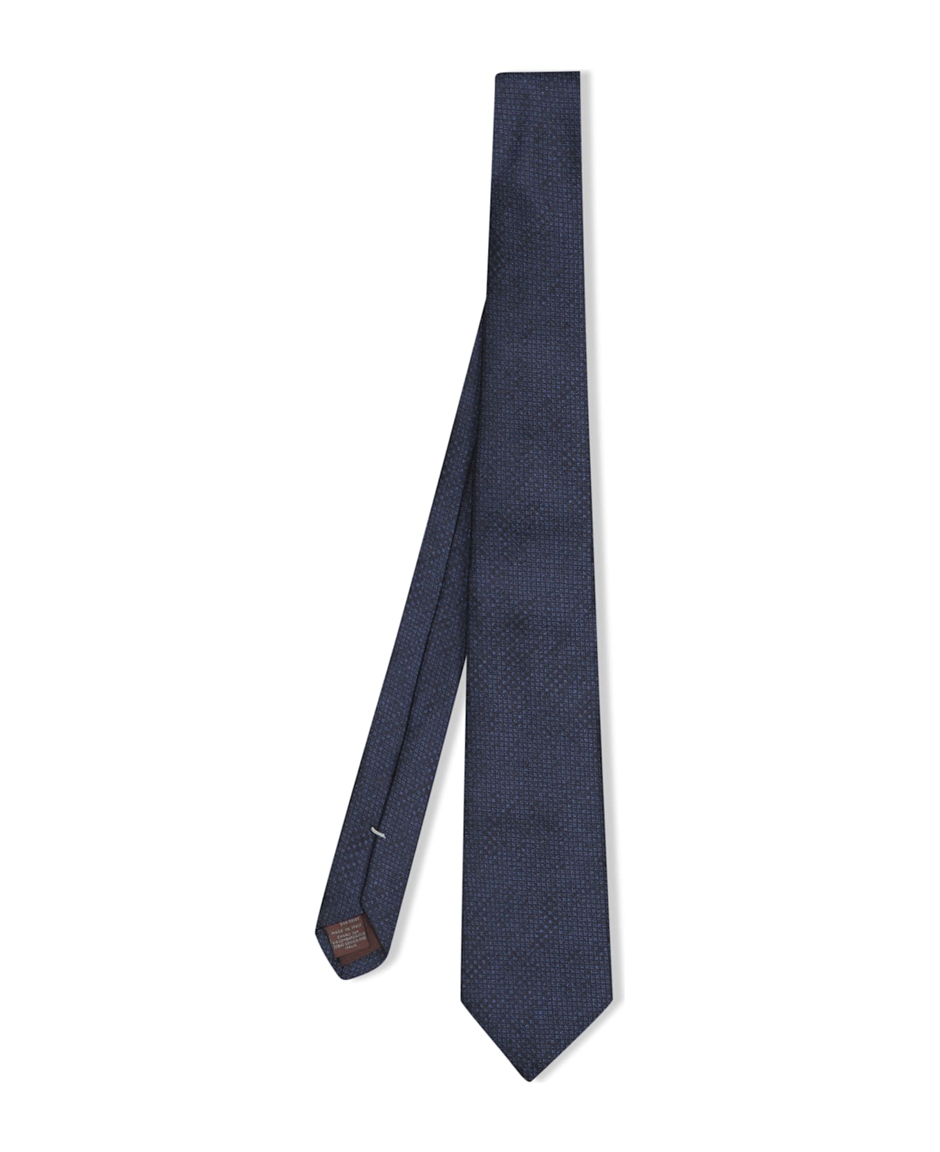 Elegant Canali tie crafted from fine silk, featuring a detailed blue geometric pattern that embodies an expression of sophistication and professional style.