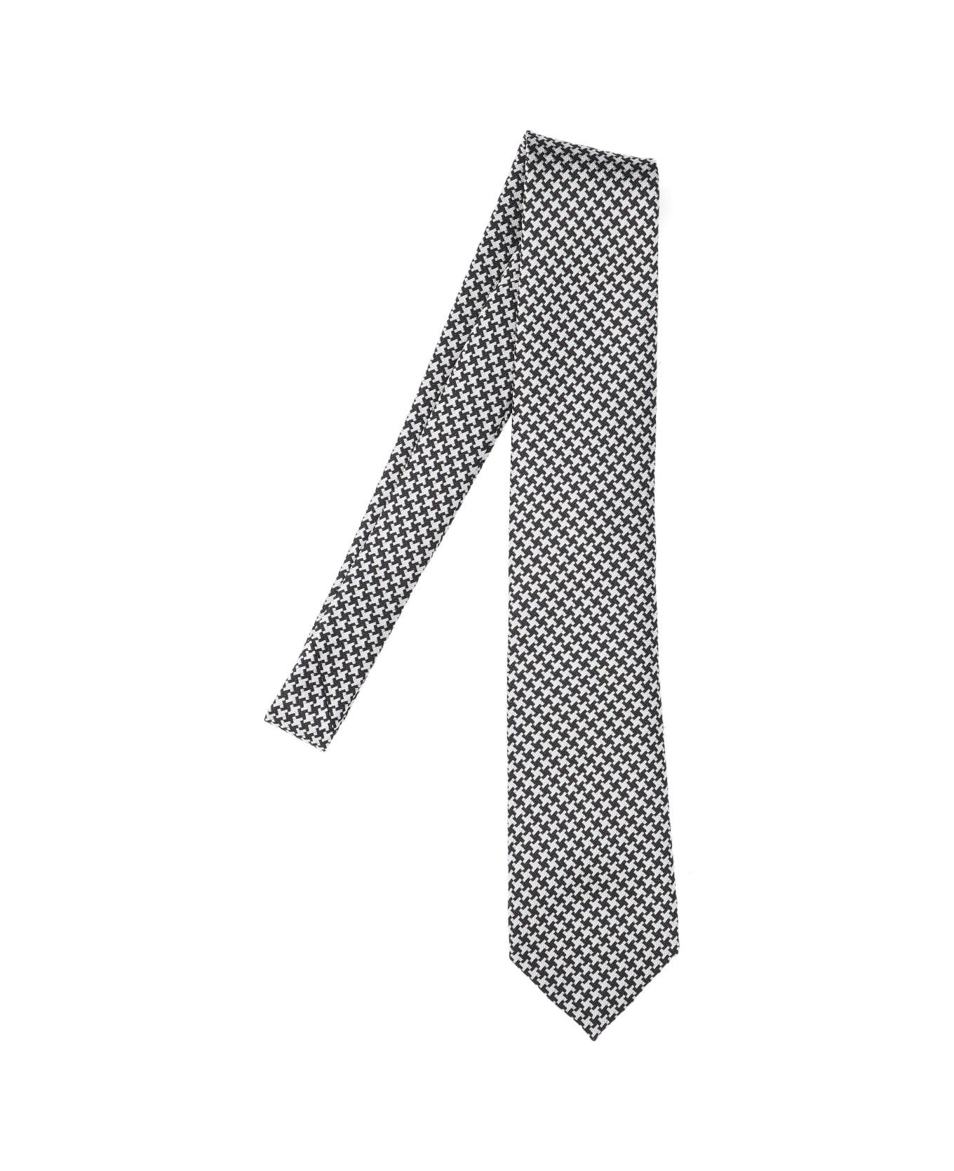 Tom Ford ' Prince of Wales' tie in black and white Mulberry silk with houndstooth pattern, adjustable.