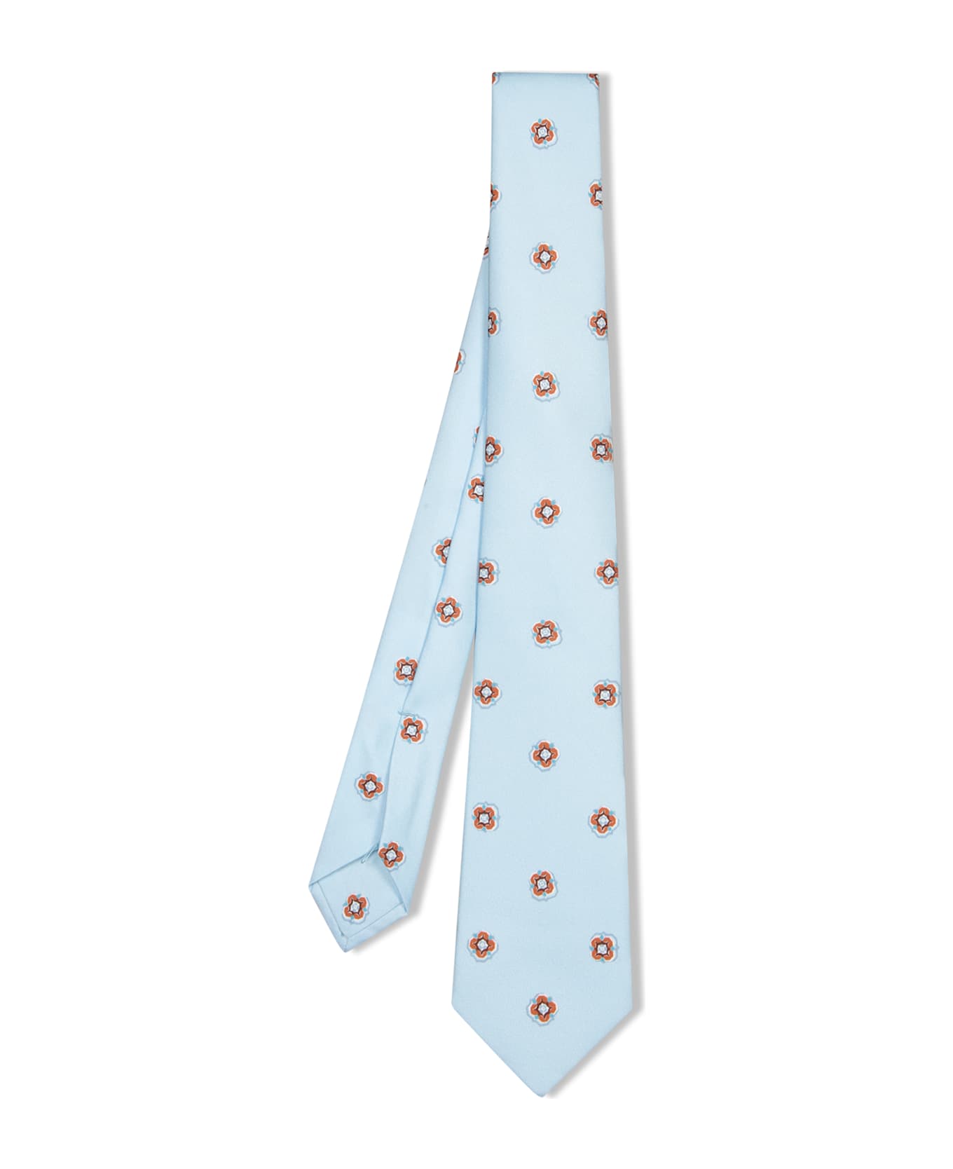 An exclusive Kiton silk tie in mint color with orange and white floral details, perfect for adding a touch of elegance and color to any formal outfit. Composition: 100% Silk