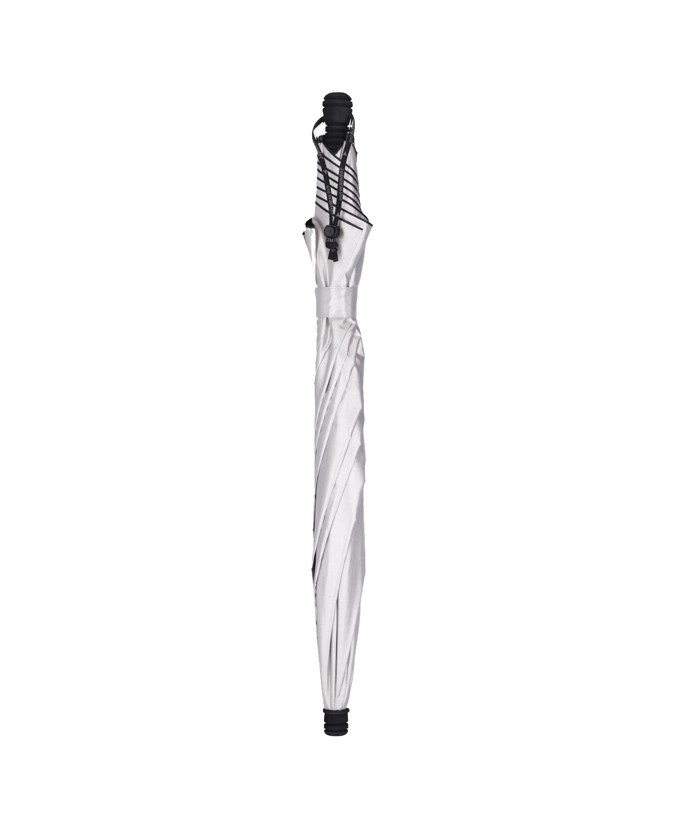 And Wander X Euroschirm logo umbrella, in silver water-repellent fabric, black fiberglass frame, UV protection, black logo print on the front.