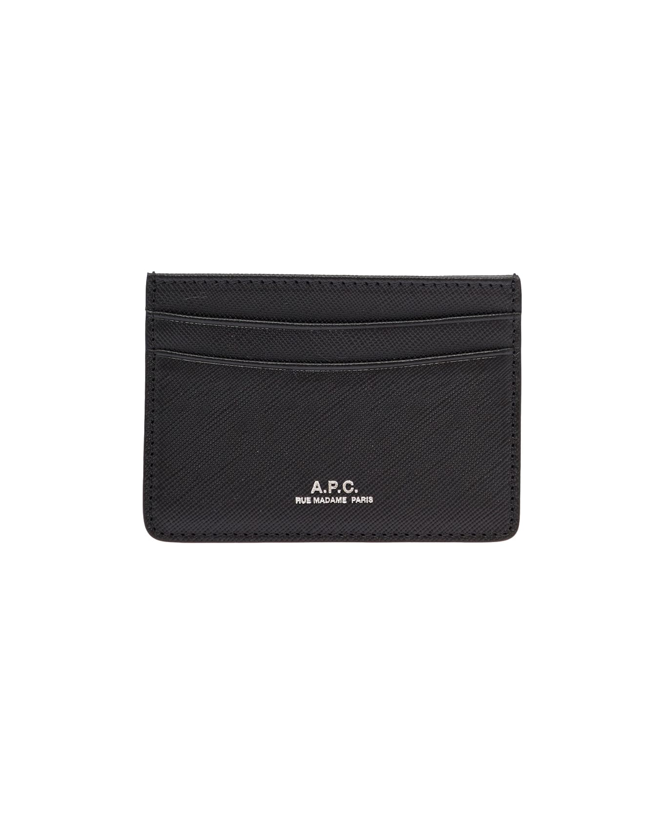 A.p.c Man's Black Hammered Leather Card Holder With Logo