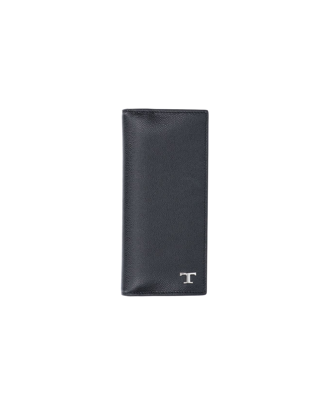 Bi-fold wallet by Tod's in calfskin, "T-Timeless" logo in silver metal on the front, internal card slots, banknote compartment, one zip pocket. Composition: 100% Calfskin