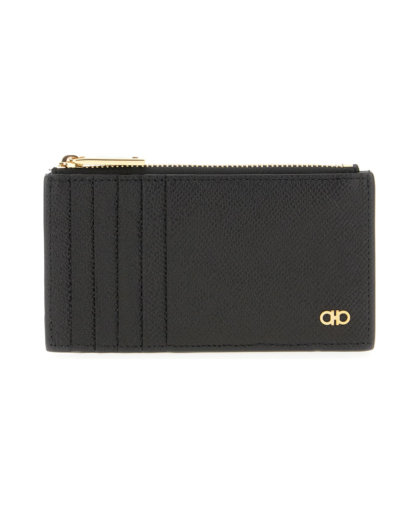Card holder realized in pebble calf leather characterized by contrasting printed logo at the back enriched by metal Gancini detail at the front. -A zip pocket and ten credit card slots Composition: Exterior: 100% Calf Composition: 100% Calf