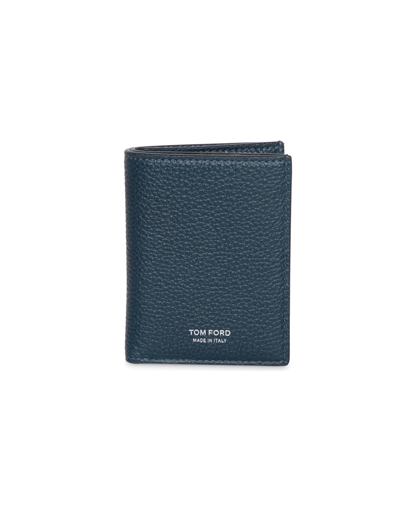 Define everyday sophistication with this elegant blue soft grain leather card holder by TOM FORD, adorned with the brand's iconic logo.