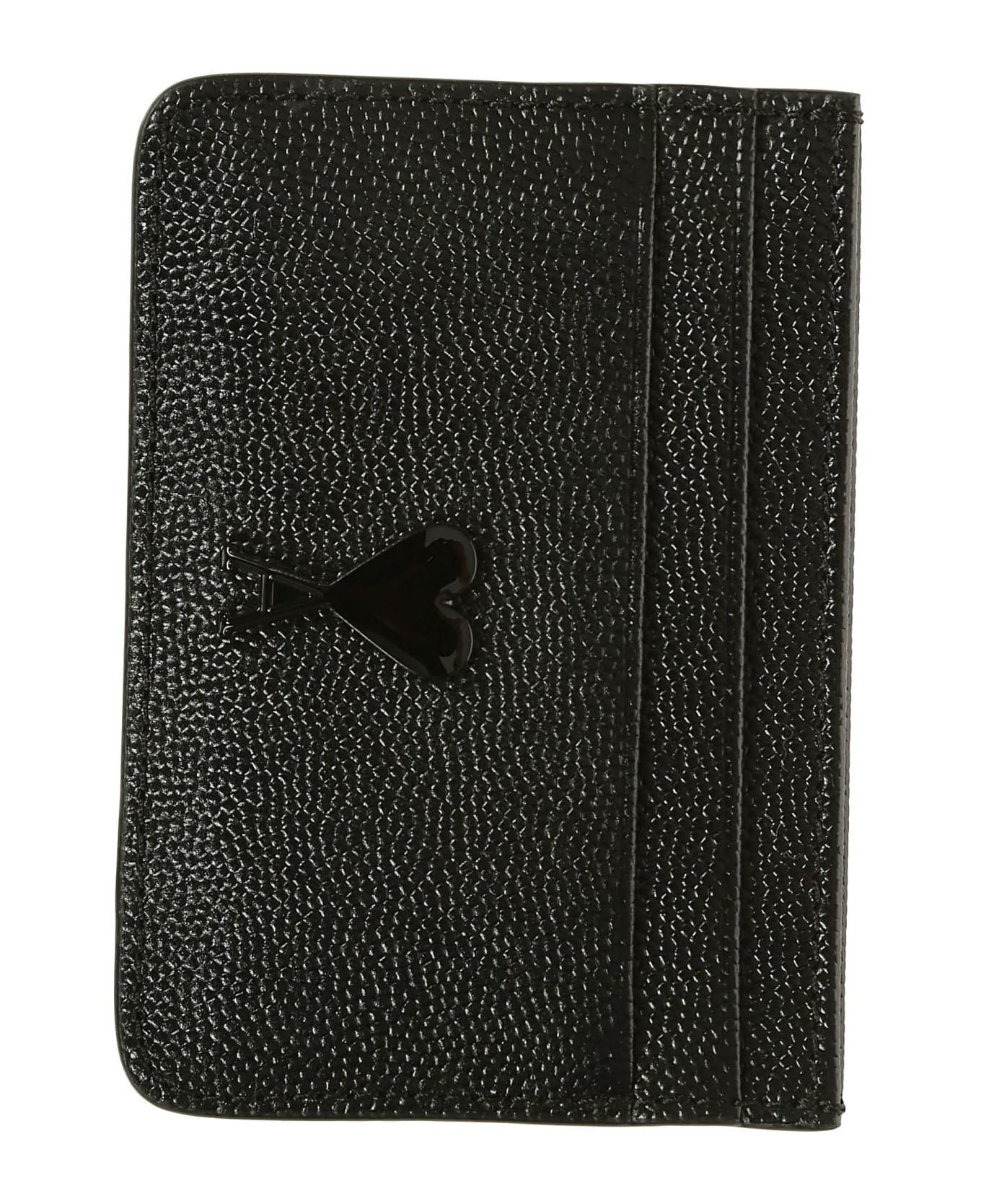 AMI Card holder in black hammered leather, logo detail. Composition: 100% Calf Leather