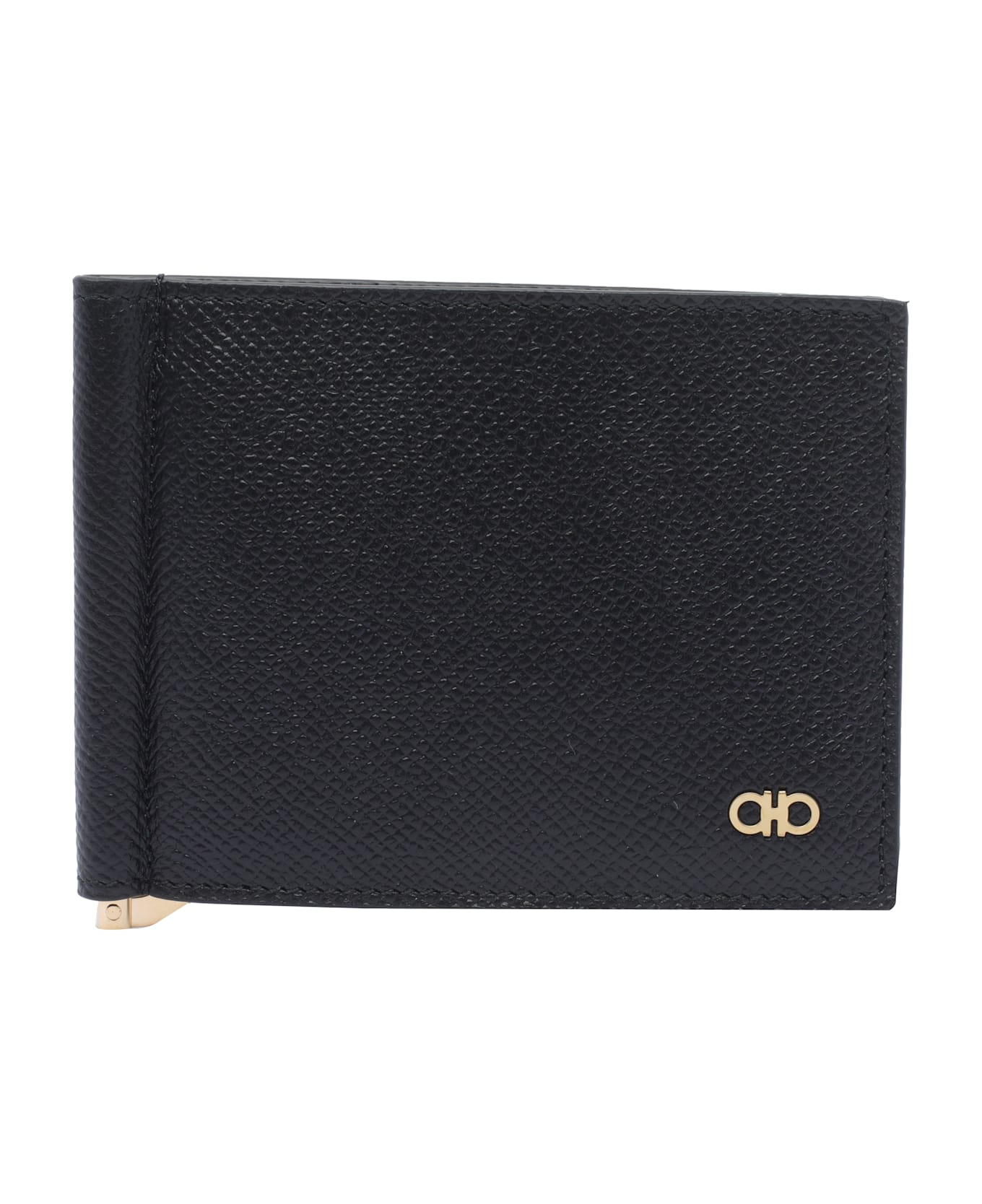 Ferragamo black Gancini wallet, notes holder, 6 slots, frontal mini logo Composition: 100% Calf Leather