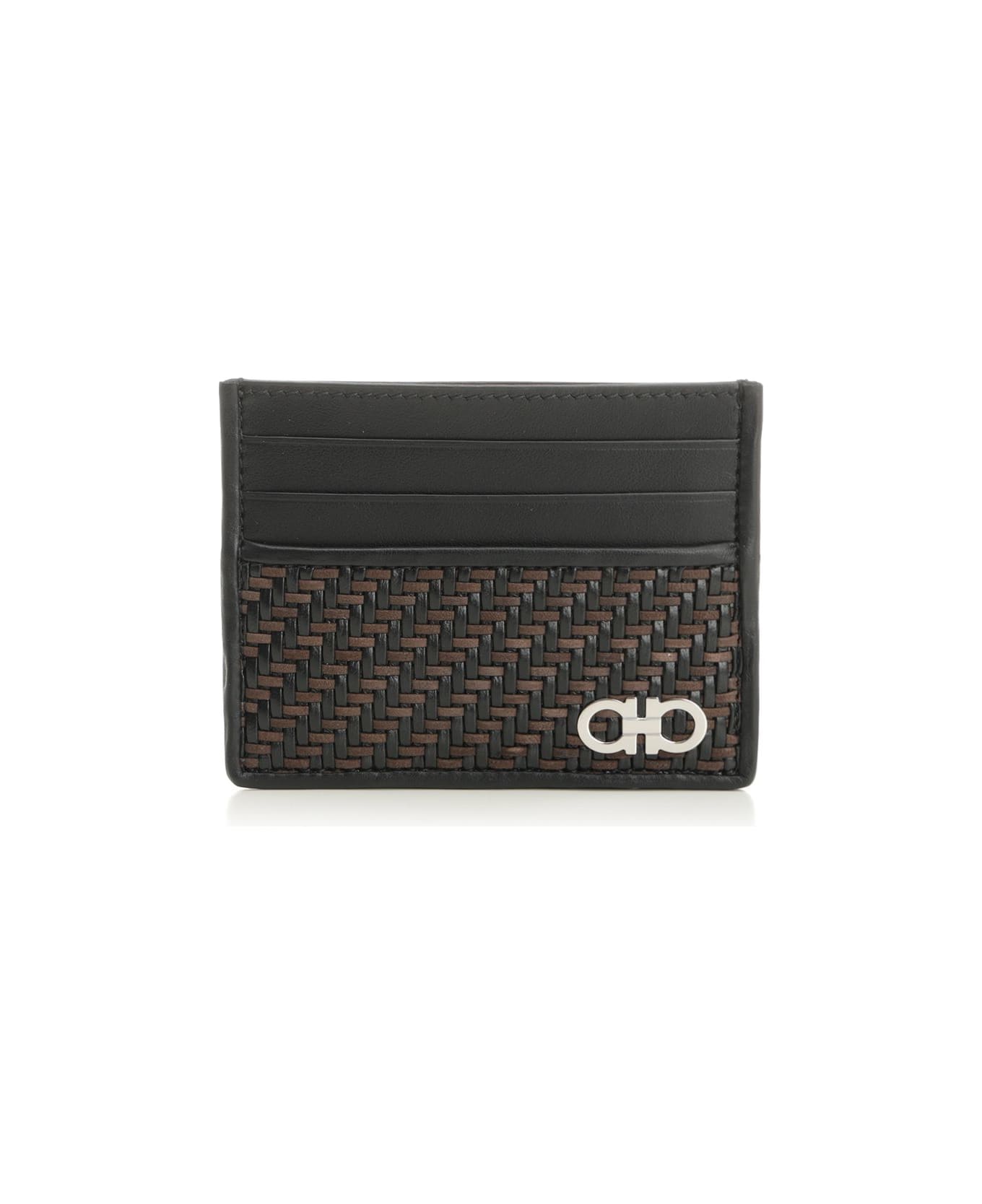 Ferragamo calfskin and suede woven card holder with slots on both sides and a palladium-finish Gancini ornament on the front. Composition: 100%WOVEN LAMB PANEL FABRIC LINING(78%COTTON22%POLIURETHANE) # #