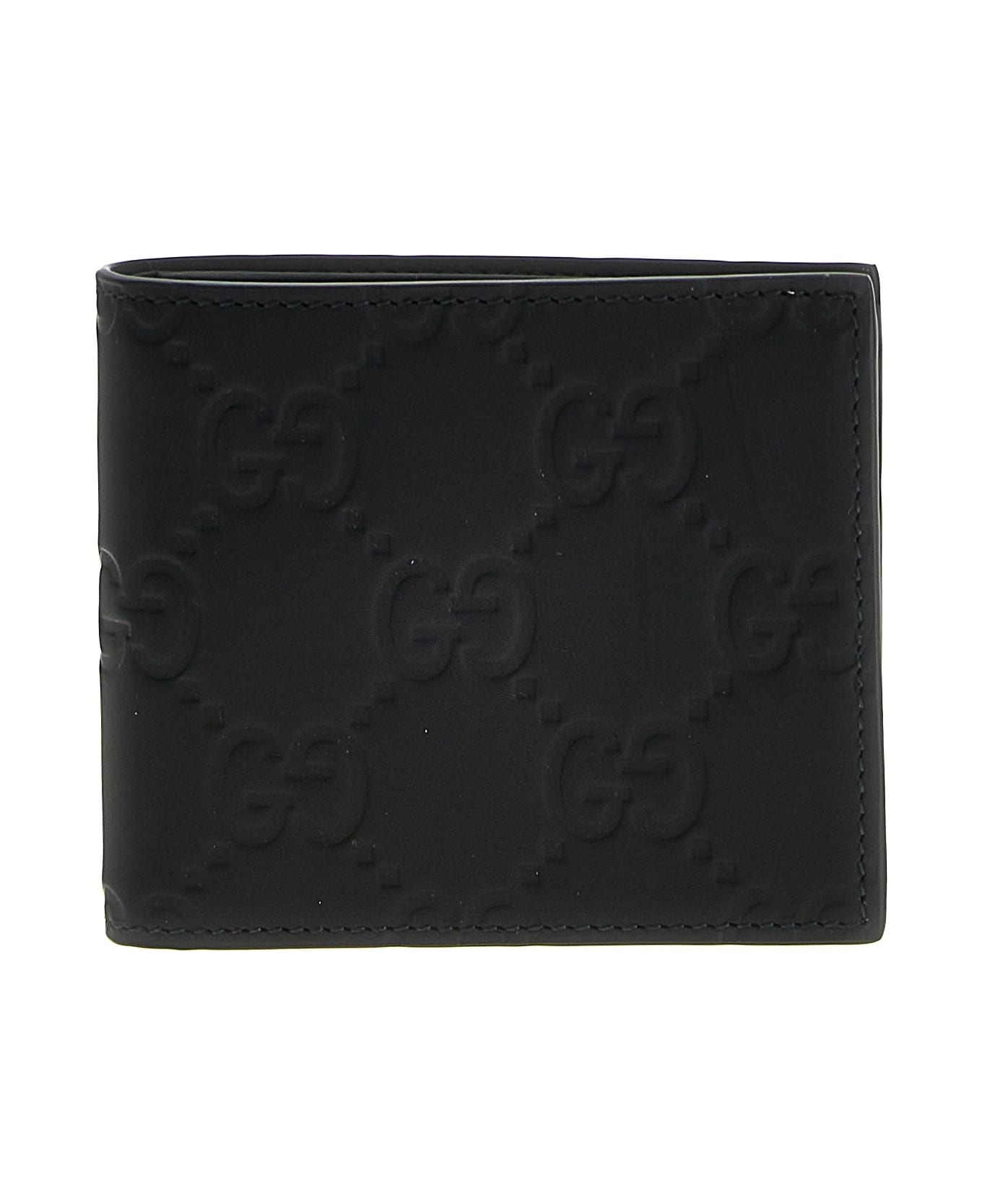 Rubberized leather wallet with all-over 'GG' logo pattern. Composition: