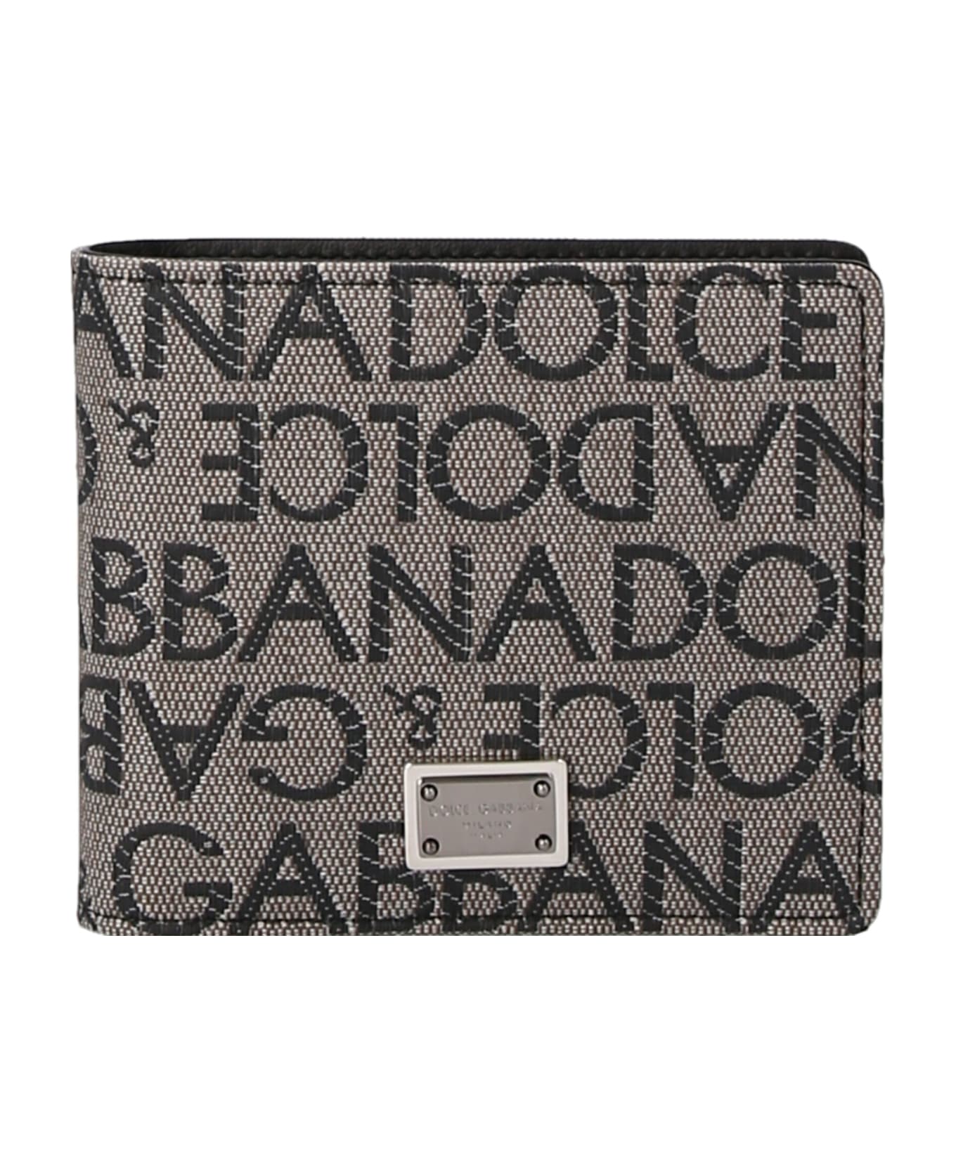 Jacquard logo fabric wallet with front logo plaque. Composition: 47% cotton 39% polyurethane 14% polyester