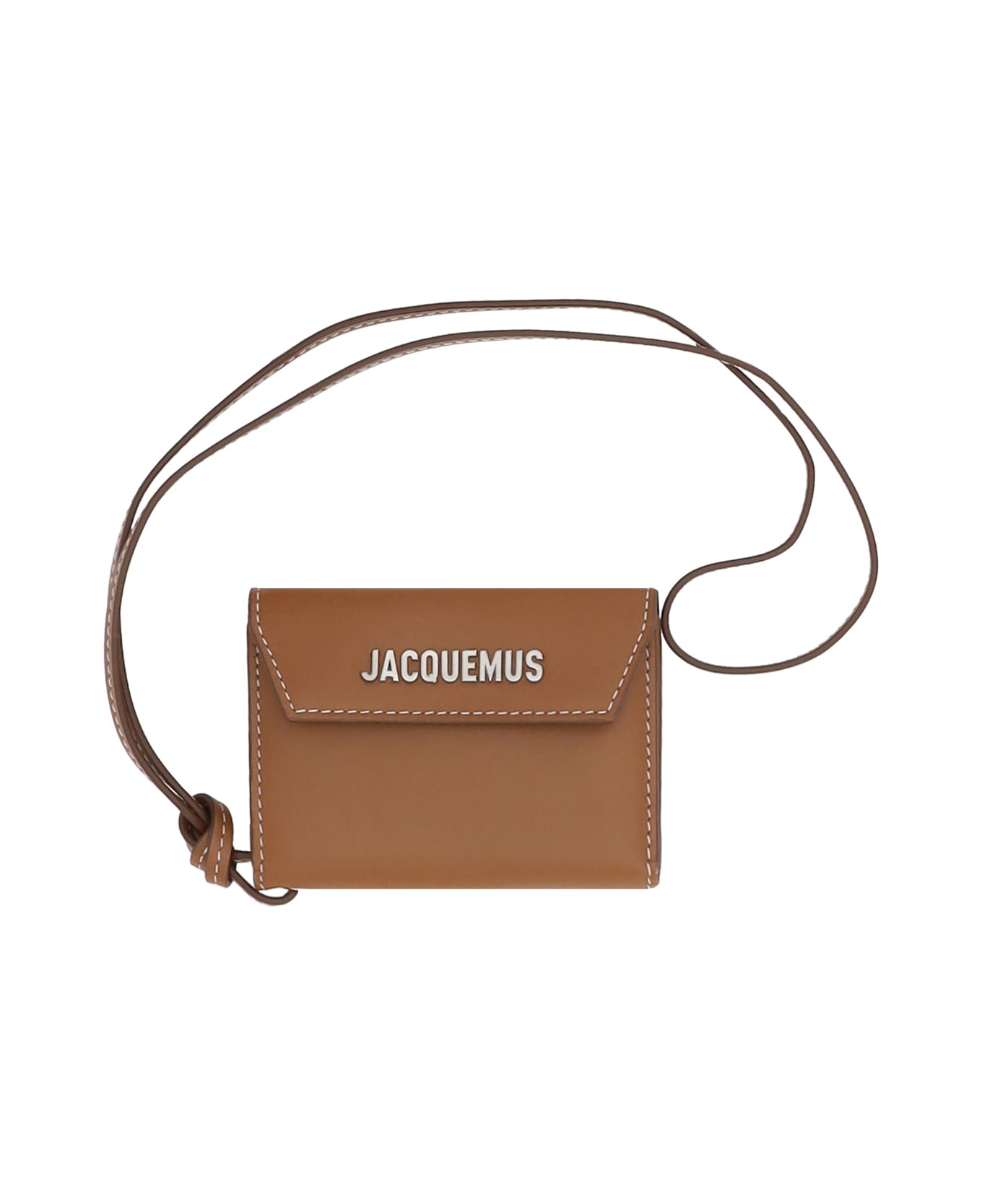 The le porte jacquemus leather wallet is an elegant and practical accessory, ideal for those seeking functionality and style. the bifold model features a flap closure and snap button on the front, while the iconic three-dimensional monogram applied to the flap adds a distinctive and sophisticated touch. the removable shoulder strap offers the possibility to wear it comfortably around the neck as well. inside, you'll find a card slot, a zippered coin slot pocket, and ample space to organize bills and documents.