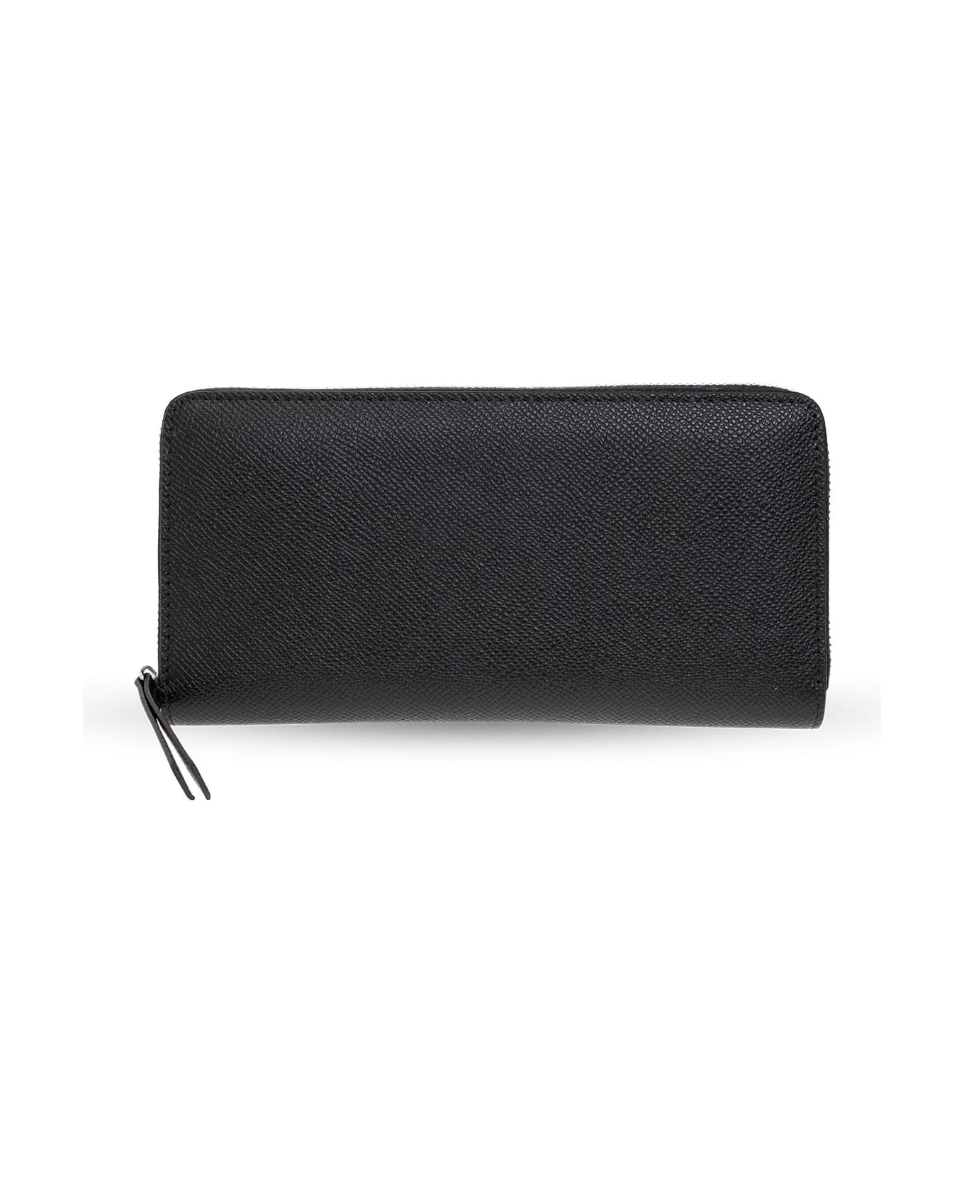 Black wallet from Maison Margiela. Crafted from grained leather, this design secures with a zipper and showcases the brand's signature white four stitches on the front. Its interior houses two bills compartments, one zip pocket and eight card slots.