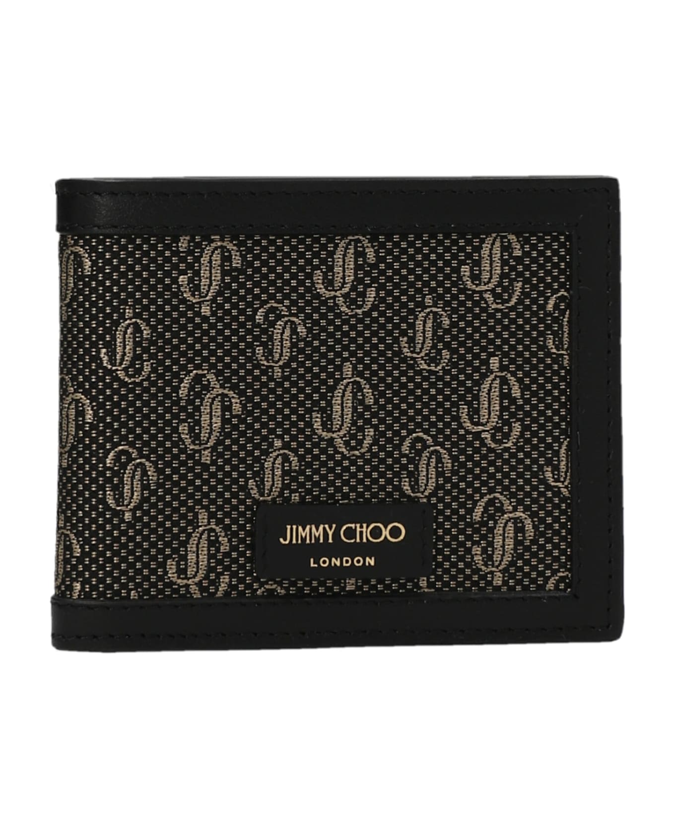 'Mark' jacquard logo print fabric wallet with leather details and interior and a front logo application. Composition: