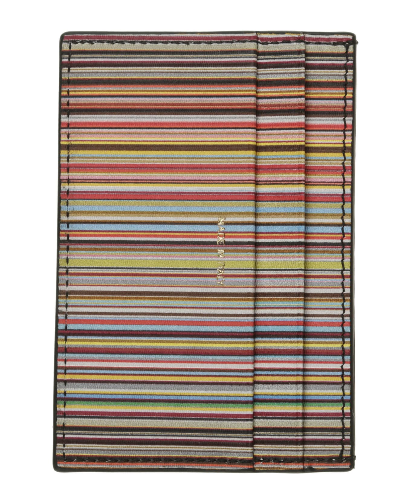 Paul Smith Leather card holder, multicolor pattern on one side, black side, logo detail.