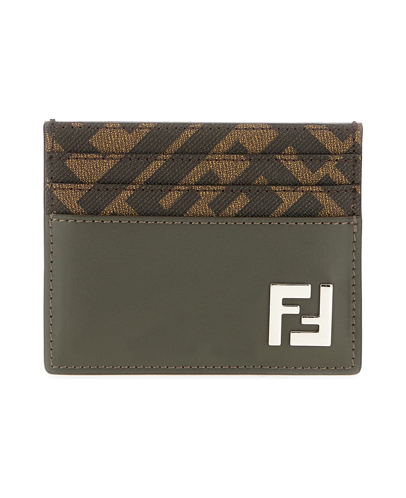 Card holder realized in calf leather characterized by FF motif print at the upper part enriched by metal FF detail at the front. -A slit pocket and six credit card slots Composition: Exterior: 100% Calf Finishing: Golden metal
