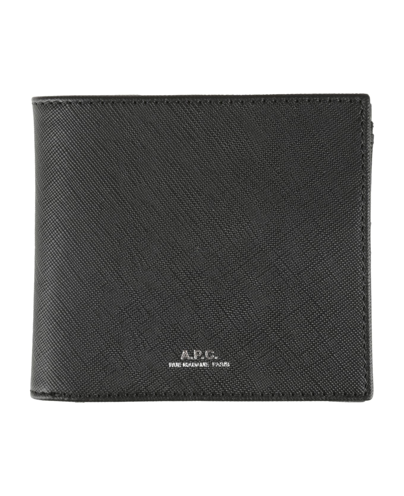 A. P. C. Leather Wallet. Two banknote pockets. Four card slots. A coin pocket with a snap flap. Small embossed `A. P. C. `